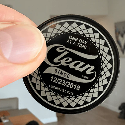 Custom Clean Date Engraved Black Coin | Sobriety Coin
