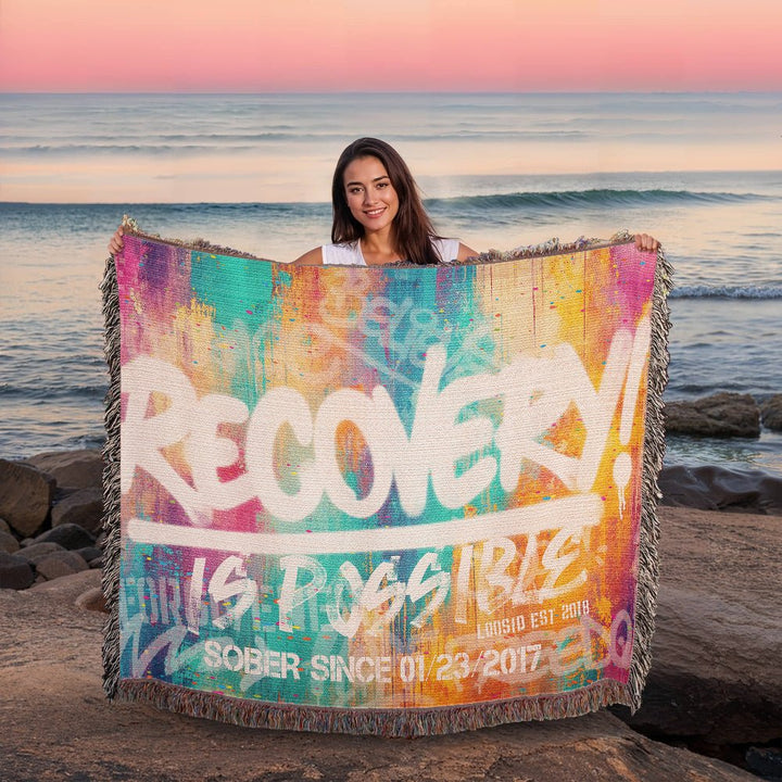 Sobriety Gift | Recovery Is Possible Woven Blanket with Date