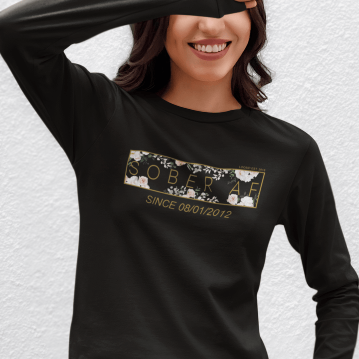 Sober AF Flower Long Sleeve with Custom Sobriety Date