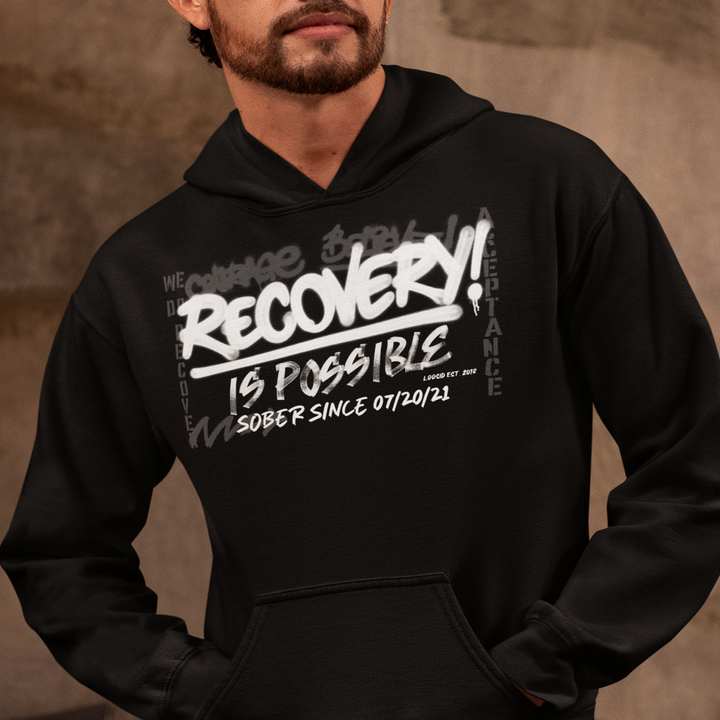Unisex Recovery Is Possible Hoodie w/ Personalized Sobriety Date