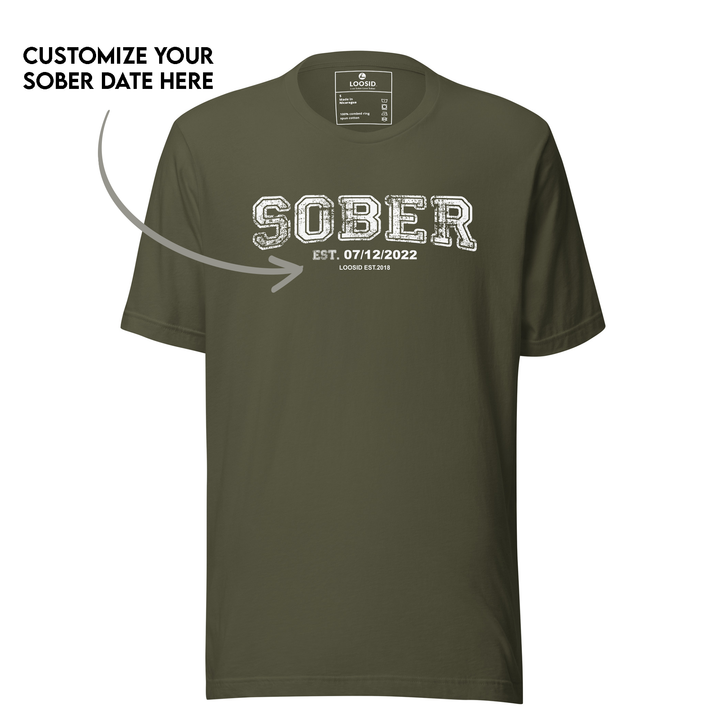 Sober Collegiate T-Shirt W/ Personalize Sobriety Date