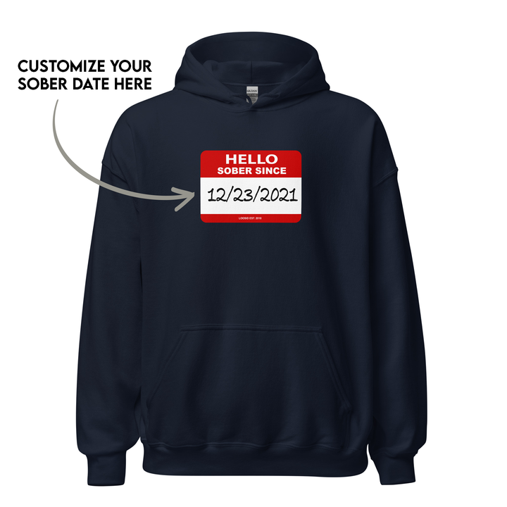 Men’s Hello Sober Since Hoodie w/ Personalized Sobriety Date