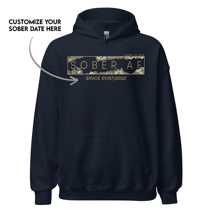 Recovery Hoodie | Men's Sober AF Camo Hoodie with Custom Sober Date