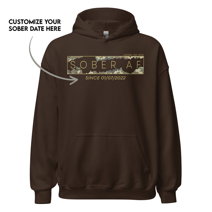 Recovery Hoodie | Men's Sober AF Camo Hoodie with Custom Sober Date
