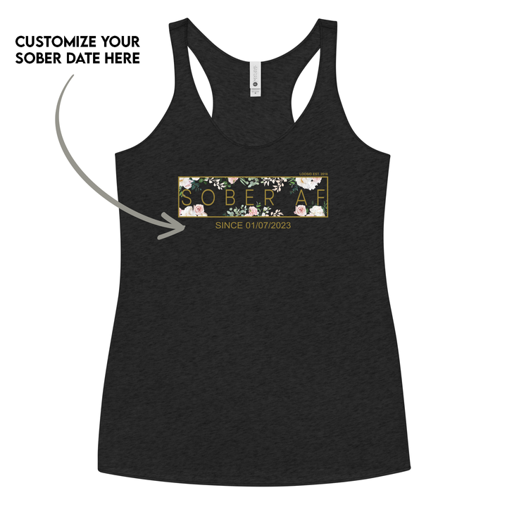 Sober Tank-top | Women’s Sober AF Flower Racerback Top with Personalized Sobriety Date