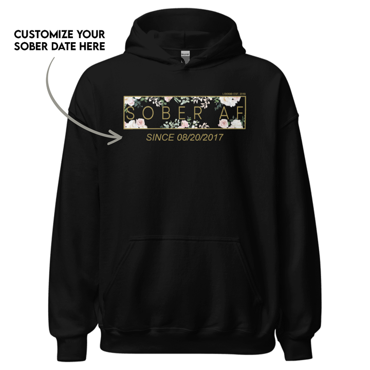 Recovery Hoodie | Women's Sober AF Flower Hoodie with Custom Date