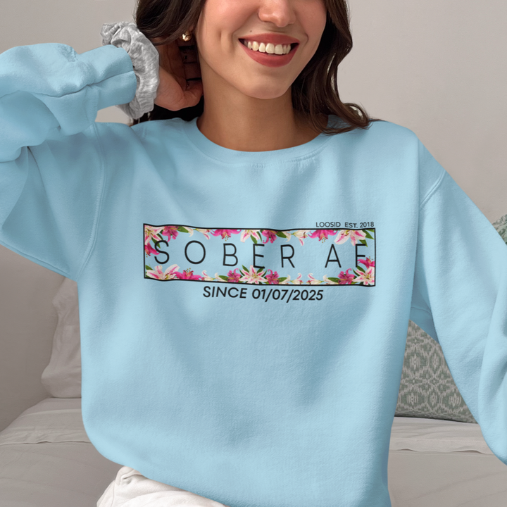 Recovery Sweatshirt | Women's Sober AF Sweatshirt w/ Custom Sobriety Date