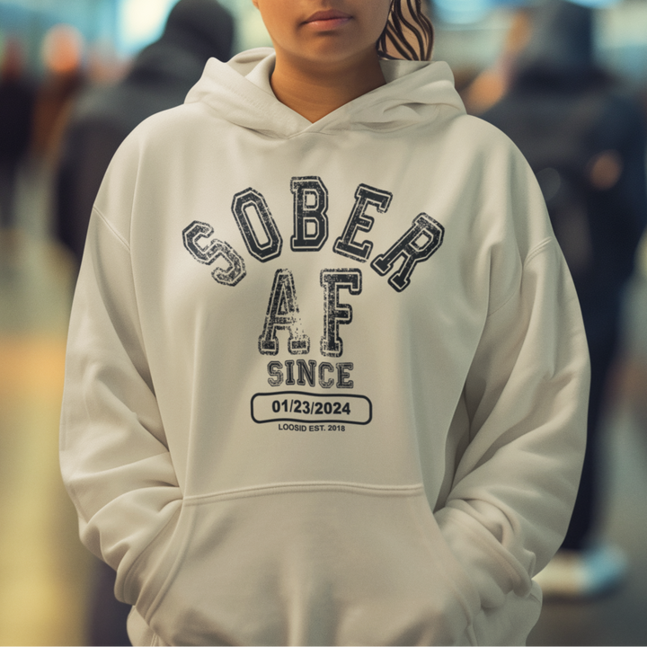 Recovery Hoodie | Sober AF Since Hoodie with Custom Sobriety Date