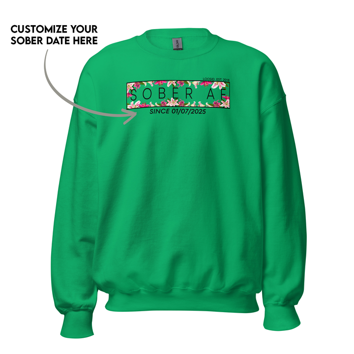 Women's Sober AF Flower Sweatshirt w/ Personalized Sobriety Date