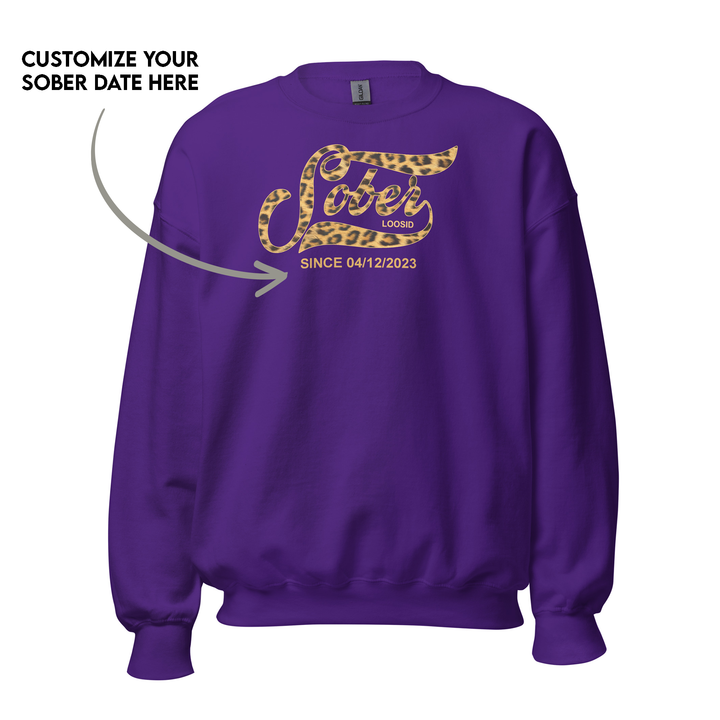 Leopard Sober Since Sweatshirt w/ Personalized Sobriety Date