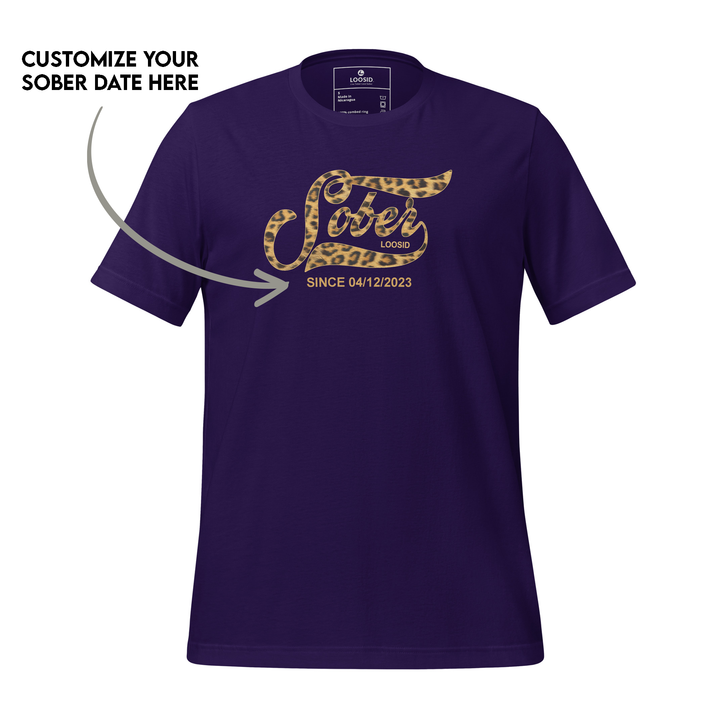 Leopard Sober Since T-Shirt w/ Personalized Sobriety Date