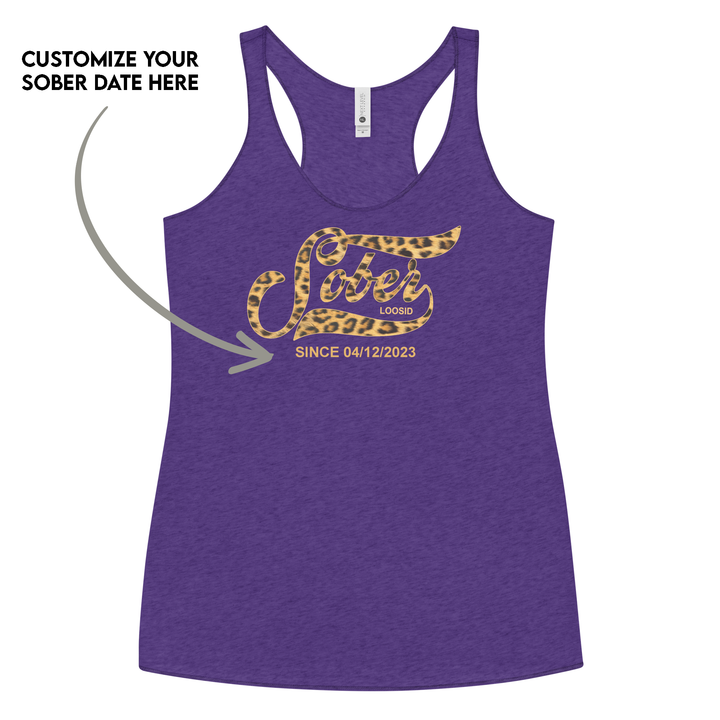Leopard Sober Since Racerback Tank w/ Personalized Sobriety Date