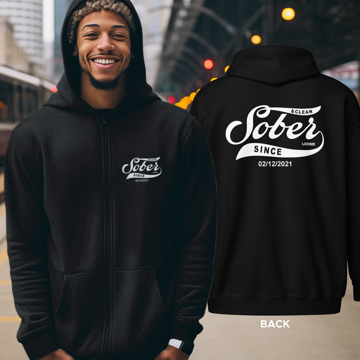 Recovery Zip Hoodie | Sober Since Unisex Hoodie with Custom Sobriety Date