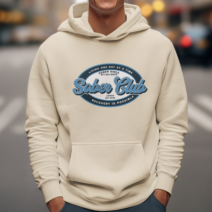 Sober Club Badge Unisex Hoodie with Custom Sobriety Date