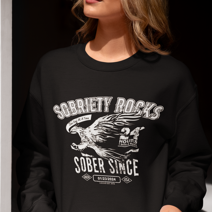 Sobriety Rocks – Sober Since Sweatshirt with Custom Sobriety Date