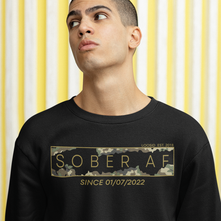 Sober AF Camo Crewneck Sweatshirt w/ Personalized Sobriety Date