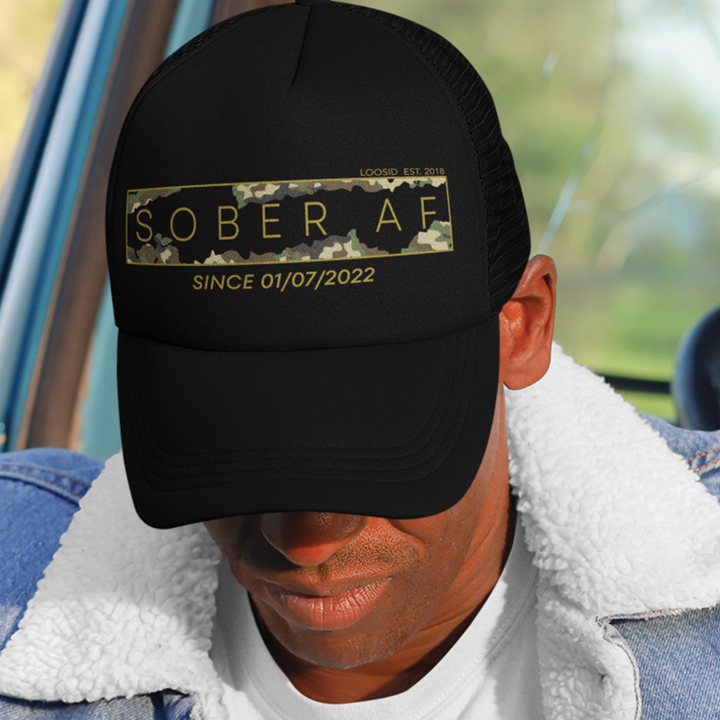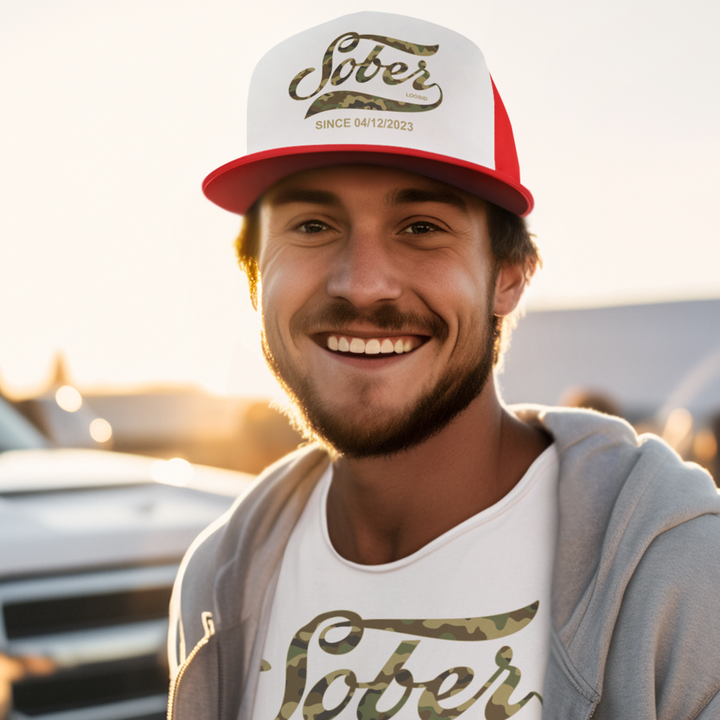 Sober Hat | Camo Trucker Hat with Custom Sobriety Date
