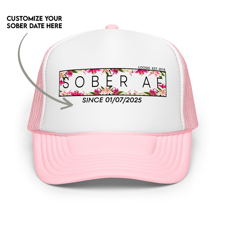 Sobriety Hat | Women's Sober AF Floral Trucker w/ Custom Date