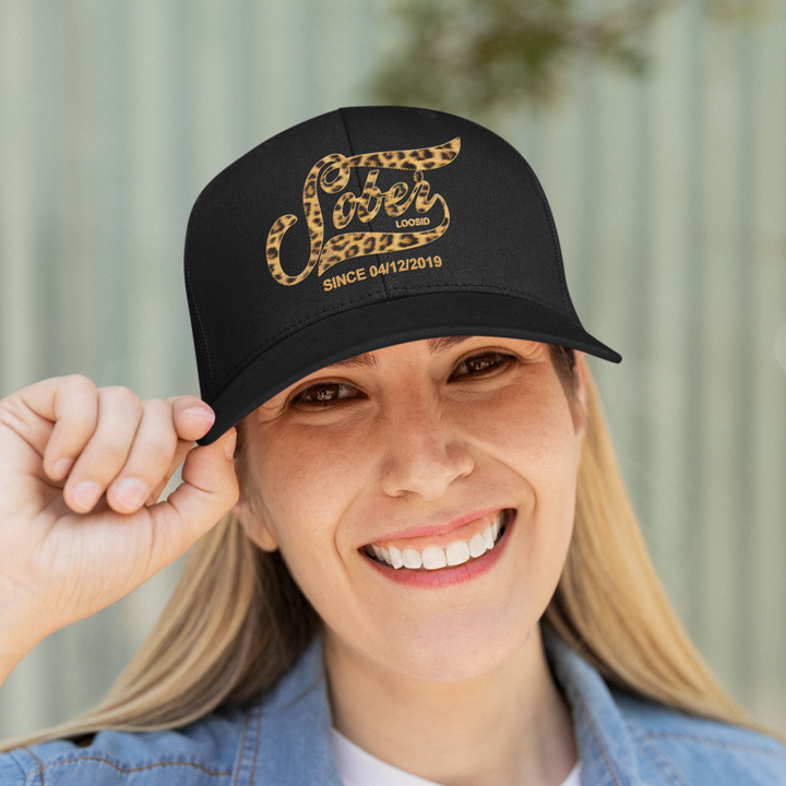 Leopard Sober Since Printed Trucker Cap w/ Personalized Sobriety Date