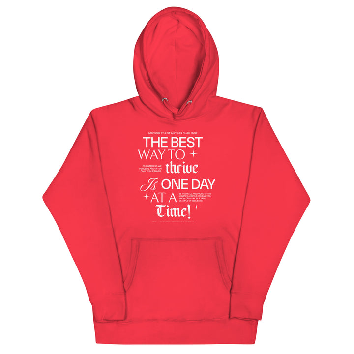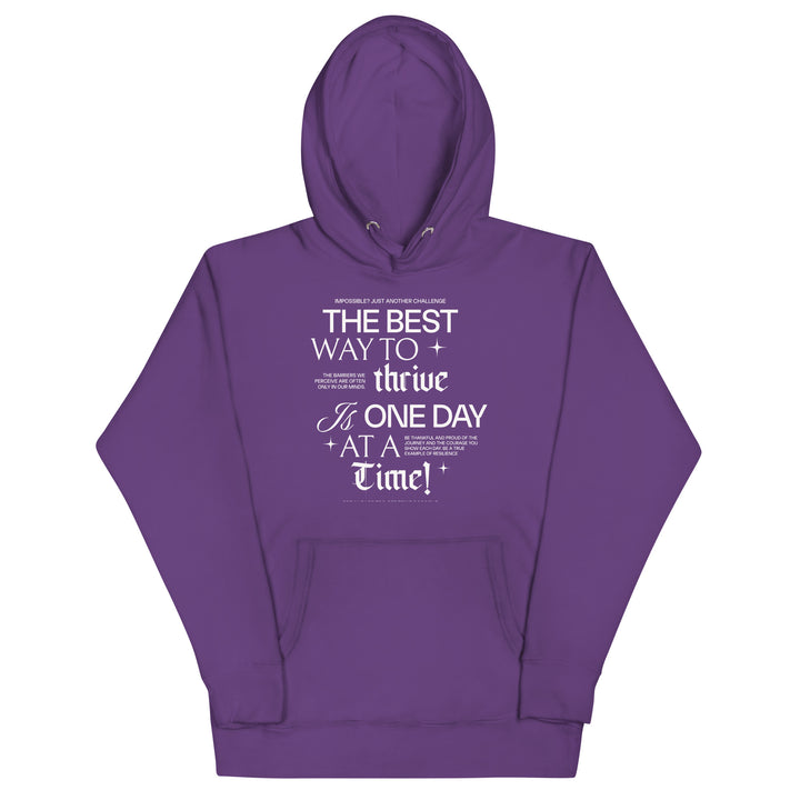 Show your appreciation for their journey and let them know just how proud you are. Whether it's a hoodie for everyday encouragement, this piece will wrap them in your gratitude and love. Give a gift that honors their path and reminds them that they are never alone—every step forward is celebrated. "The Best Way To Thrive Is One Day At A Time"