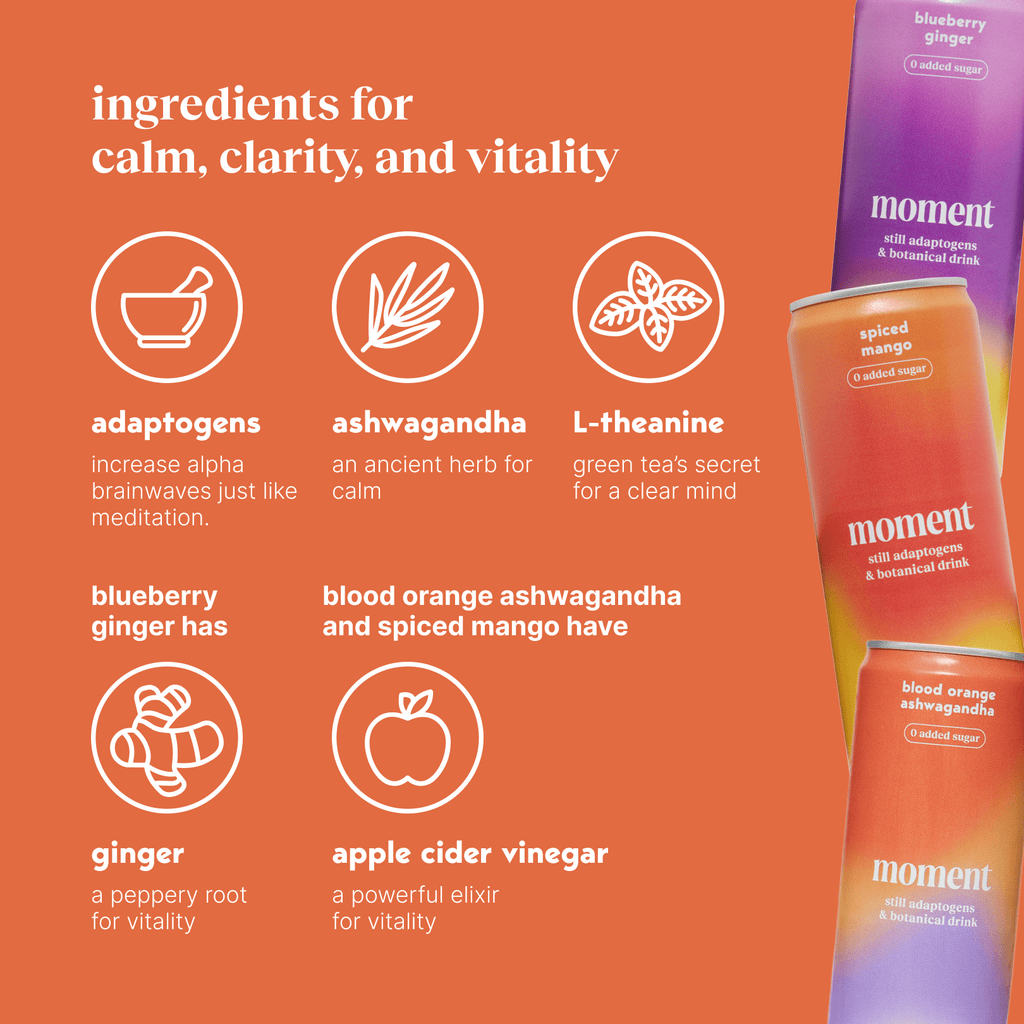 This bundle comes with 12 cans of still Moments. we like to keep it fun and fresh, so we rotate flavors on a regular basis.