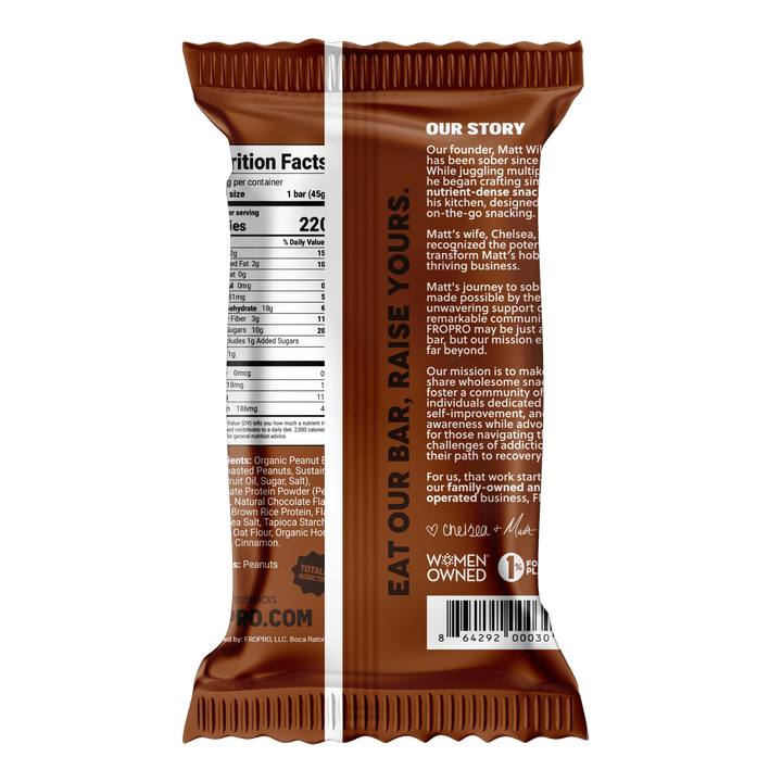 The creamiest organic peanut butter in the whole universe, paired with cacao — which is basically chocolate — but way cooler sounding! This is the exact moment where you totally get peanut butter cup vibes and add this bar to cart! FRO-TIP: We sell by the box, and pallet as well and we’re not sorry! In case you were wondering…