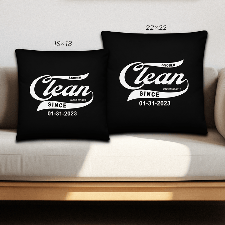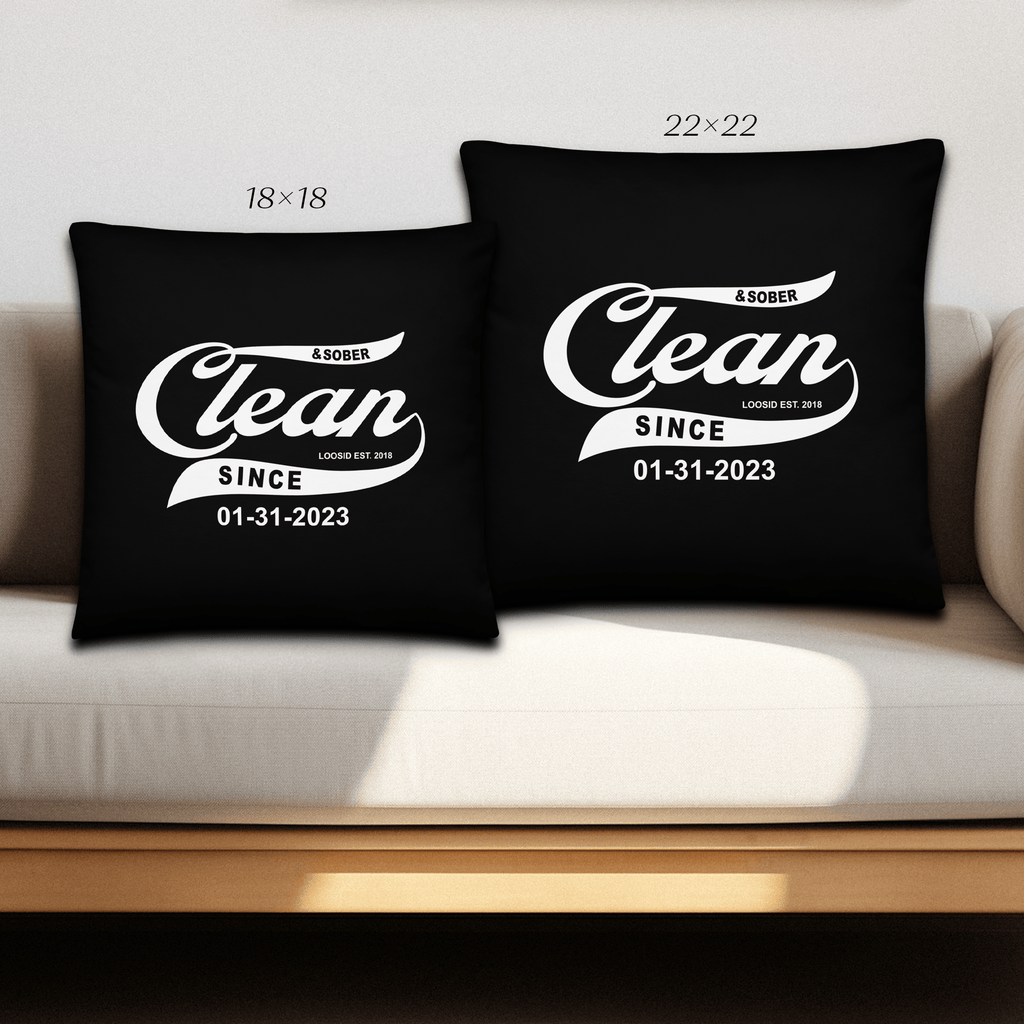 Showcase your sobriety milestone proudly with the Loosid Clean & Sober Since Pillow with your personalized sobriety date. This personalized Loosid Pillow lets you showcase your sobriety milestone proudly and uniquely. Made with premium, ultra-soft fabric, this Pillow is designed for comfort and durability.