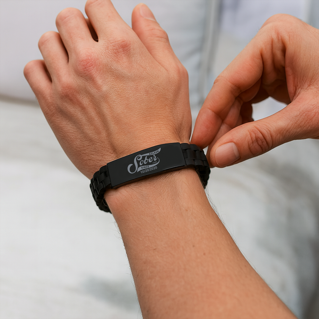 Celebrate your recovery journey with this meaningful black engraved stainless steel bracelet, a refined piece of Sober Jewelry that represents strength, courage, and commitment. The Loosid “Sober Since” Engraved Bracelet lets you proudly display your sobriety date, turning your milestone into a lasting symbol of perseverance.