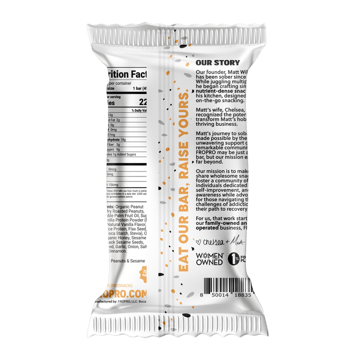 Sweet meets salty in our newest protein-packed creation! Made with rich, organic peanut butter and vanilla protein, this bar delivers a creamy, nutty base balanced by the crave-worthy crunch of sesame and poppy seeds. Hints of garlic, onion, and sea salt add that signature everything bagel flavor, while organic honey and a touch of cinnamon bring just the right amount of sweetness.