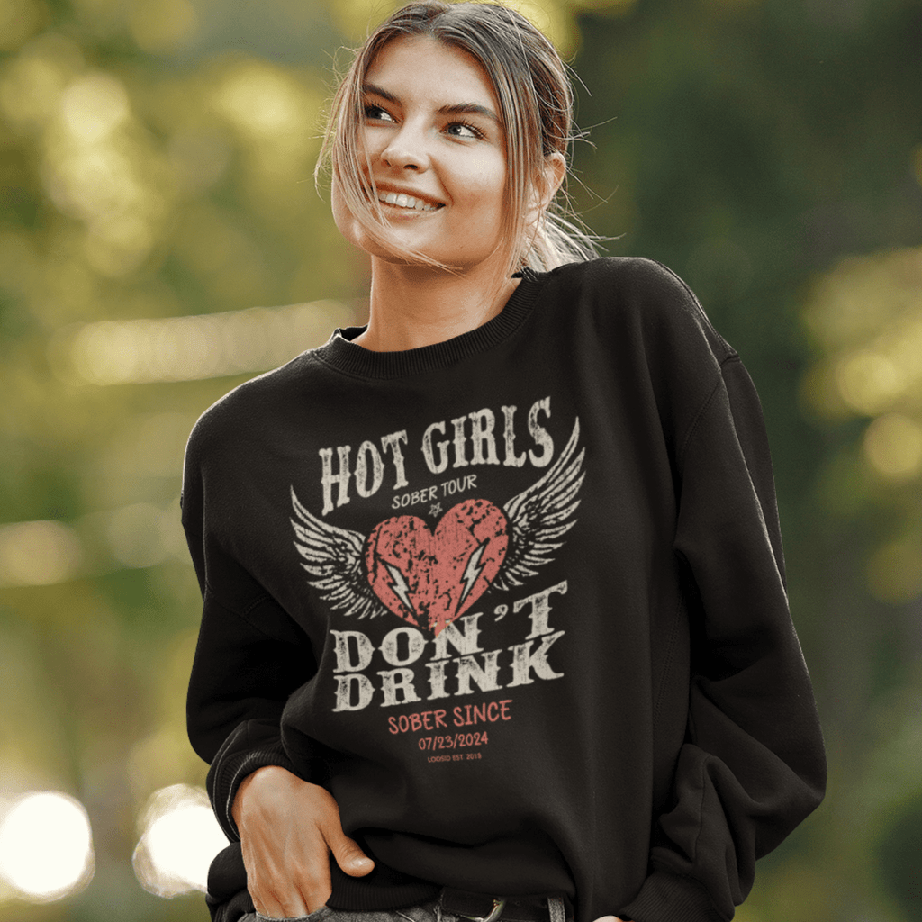 Hot Girls Sweatshirt with Custom Sobriety Date
