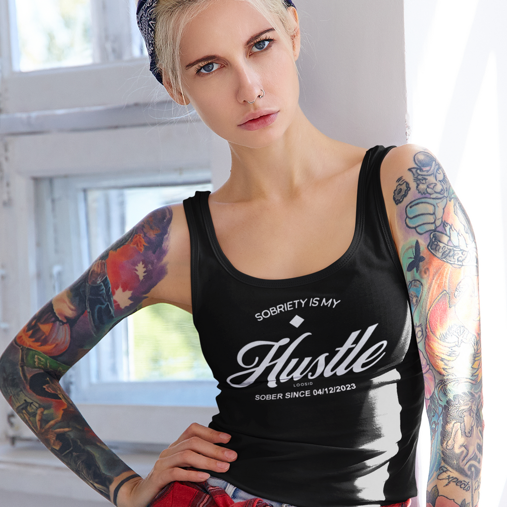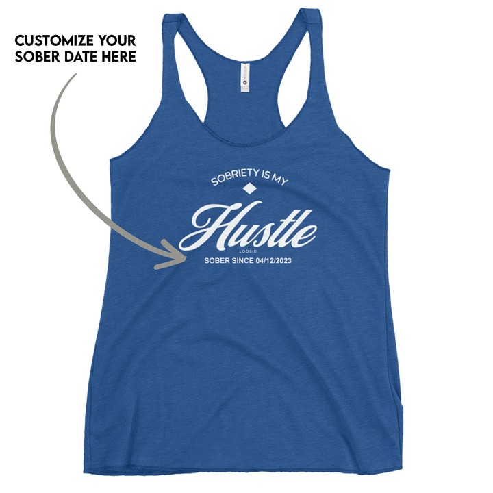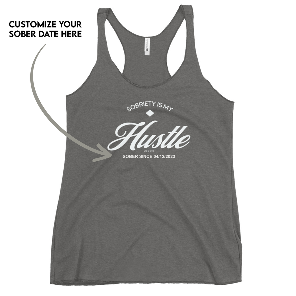 Hustle Women's Racerback Tank w/Personalize Sober Date