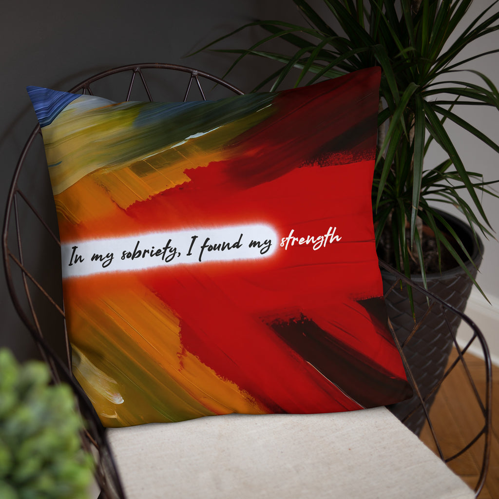 "In My Sobriety, I Found My Strength" Pillow Art – A Bold Celebration of Resilience