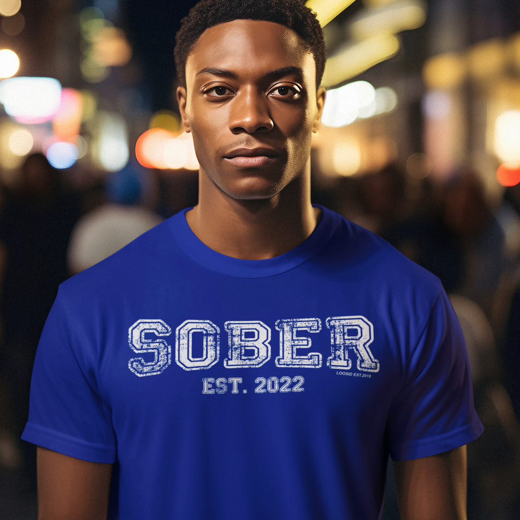 Showcase your sobriety milestone proudly with the Loosid Men's Sober Est T-Shirt with your personalized sobriety date. This personalized Loosid t-shirt lets you showcase your sobriety milestone proudly and uniquely. Made with premium, ultra-soft fabric, this t-shirt is designed for comfort and durability, whether you're lounging at home or out with friends.