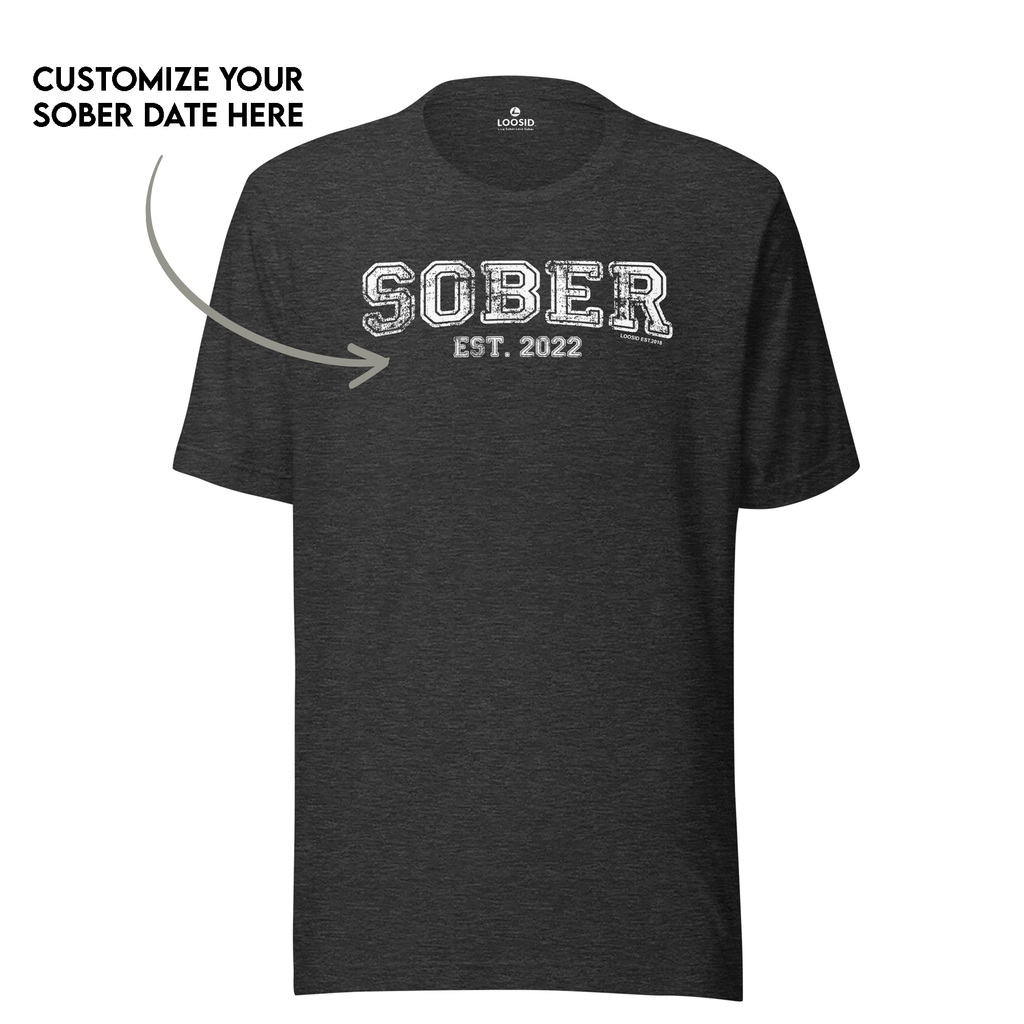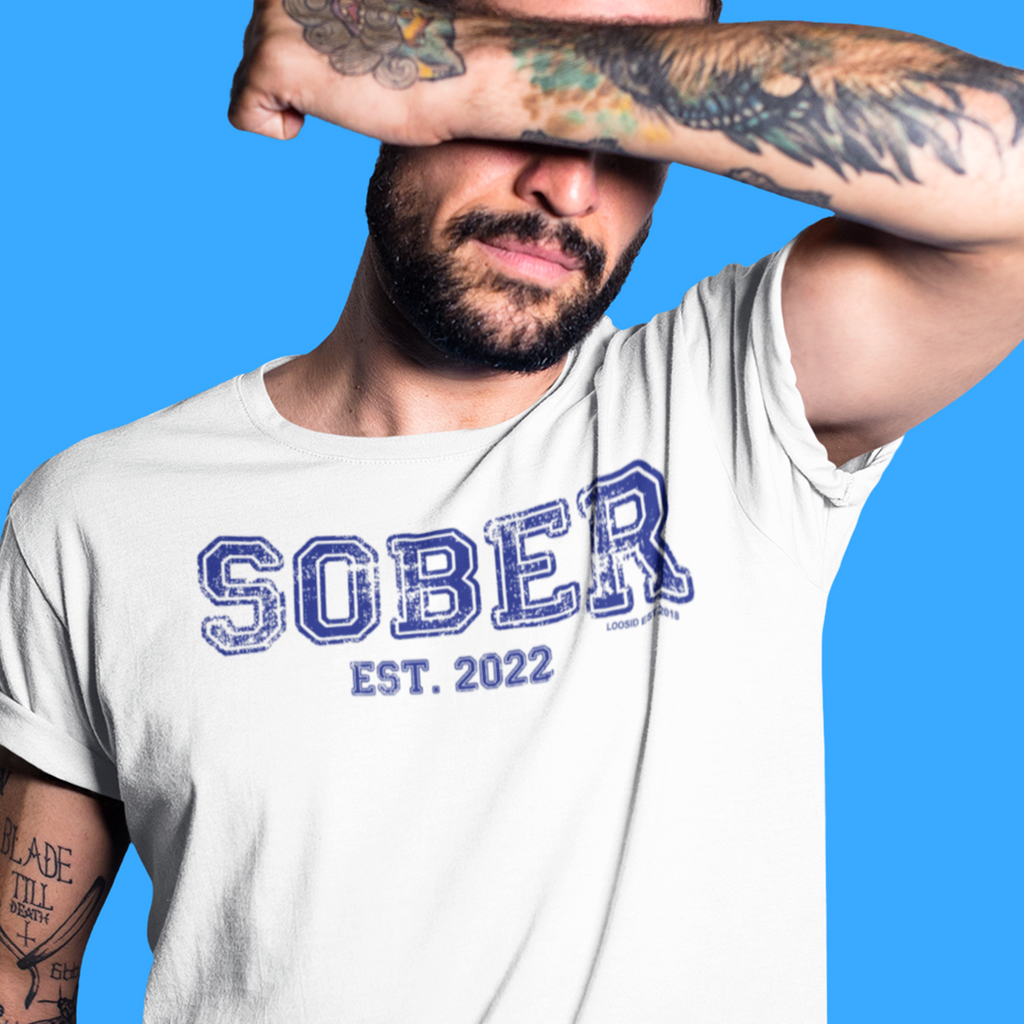 Showcase your sobriety milestone proudly with the Loosid Men's Sober Est T-Shirt with your personalized sobriety date. This personalized Loosid t-shirt lets you showcase your sobriety milestone proudly and uniquely. Made with premium, ultra-soft fabric, this t-shirt is designed for comfort and durability, whether you're lounging at home or out with friends.
