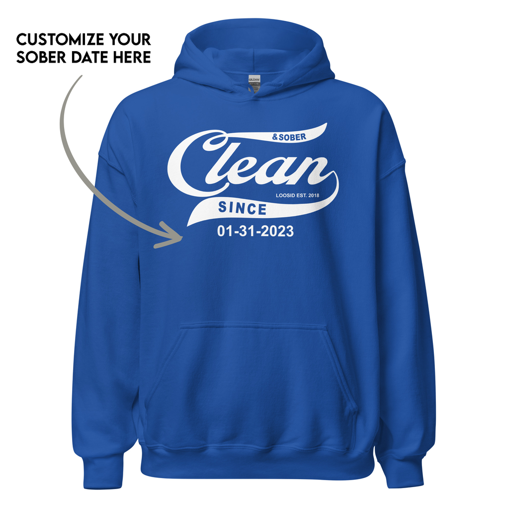 Showcase your sobriety milestone proudly with the Loosid Men's Clean & Sober Since Recovery Hoodie, personalized with your sobriety date. Made from premium, ultra-soft fabric, this hoodie offers all-day comfort and lasting durability—perfect for relaxing at home or staying inspired on the go. Whether you're honoring your own journey or gifting someone you admire, this recovery hoodie is a powerful reminder of strength, resilience, and how far you've come.
