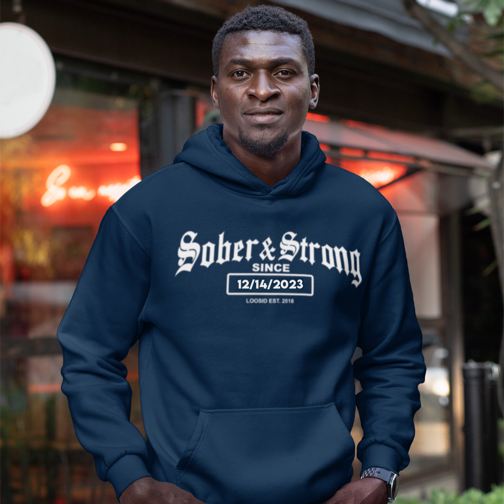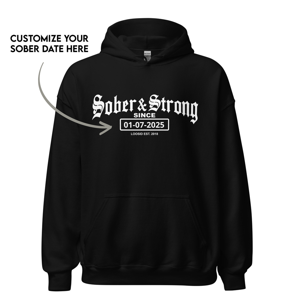 Showcase your sobriety milestone proudly with the Loosid Men's Old School Recovery Hoodie, complete with your personalized sobriety date. This custom hoodie lets you honor your journey in a meaningful and personal way. Made with ultra-soft, premium fabric, this recovery hoodie is built for comfort and durability—perfect whether you're relaxing at home or out with friends. A thoughtful piece for anyone in recovery or as a gift for someone you admire.