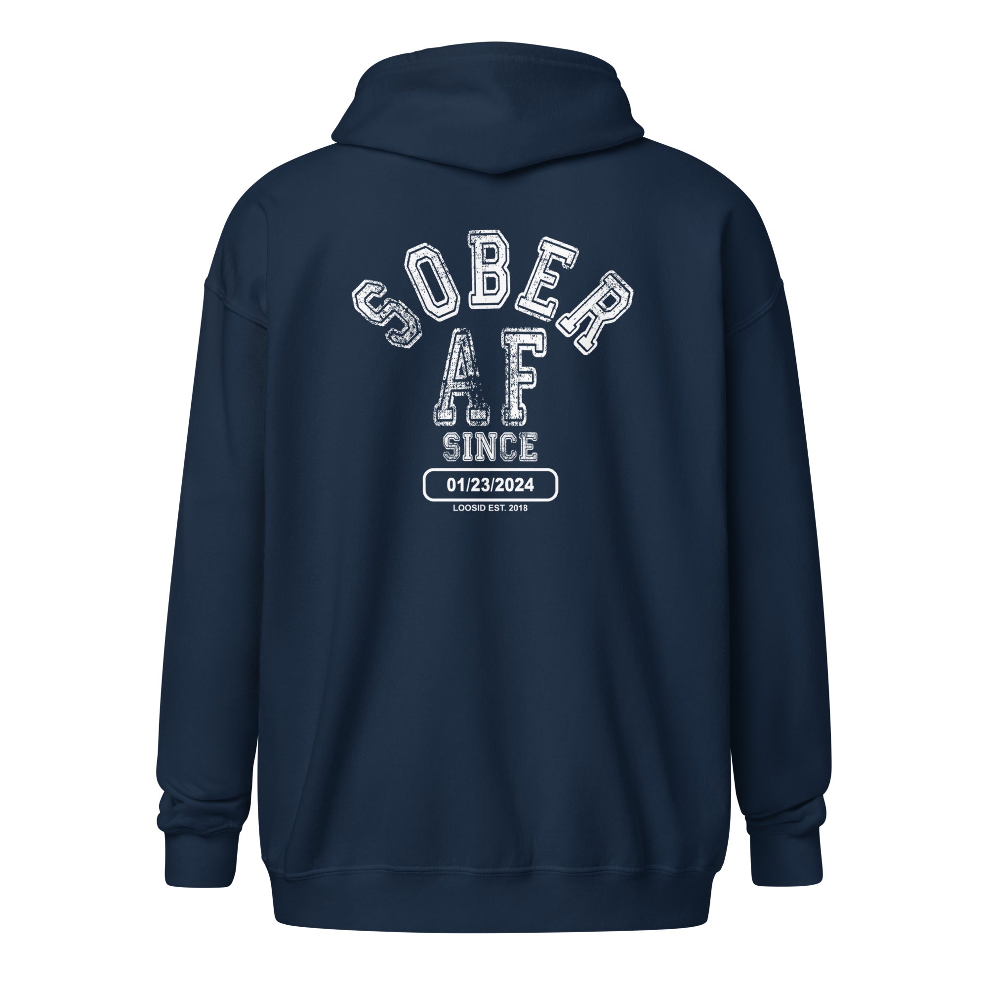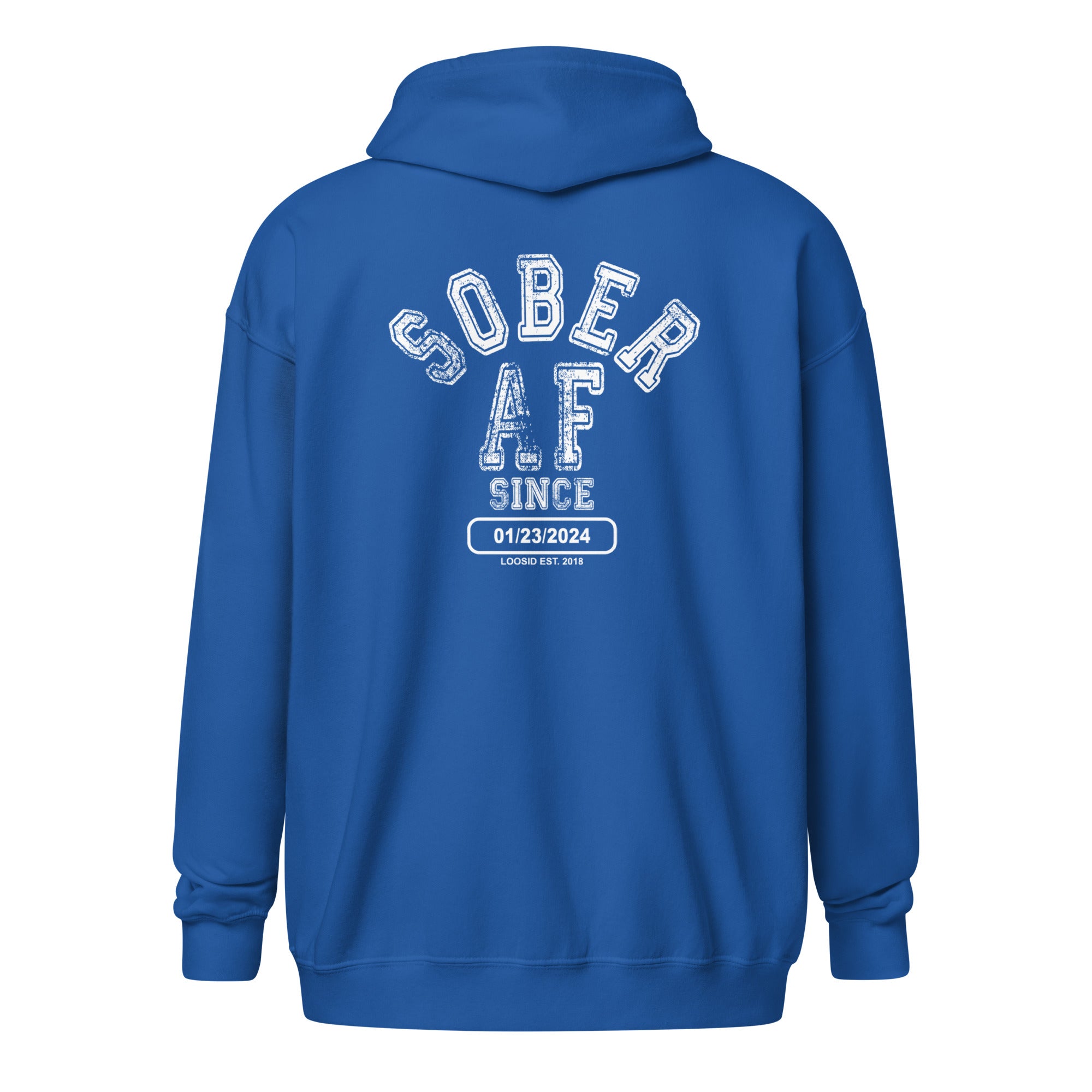 Recovery Hoodie | Sober AF Since Zip Hoodie with Custom Sobriety Date