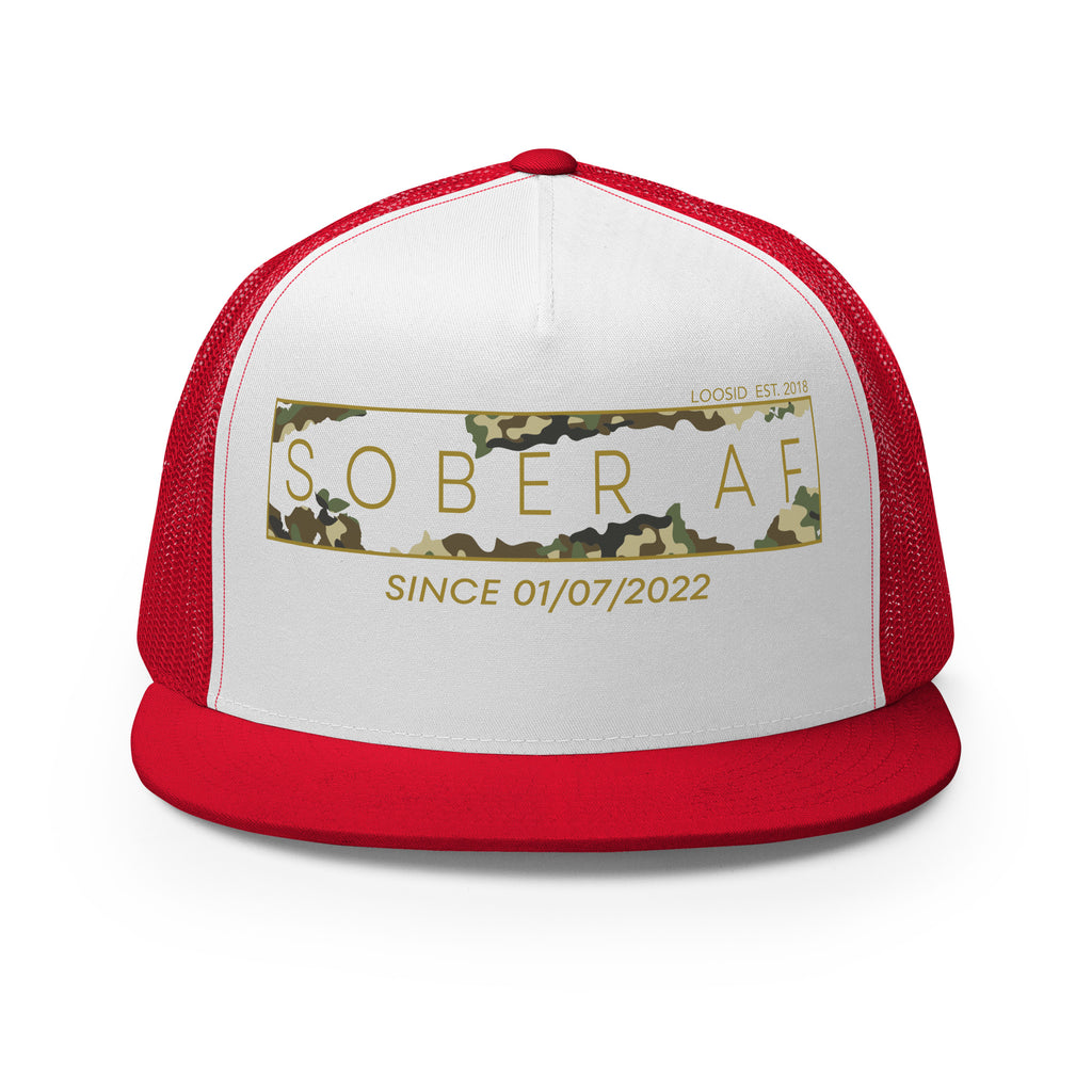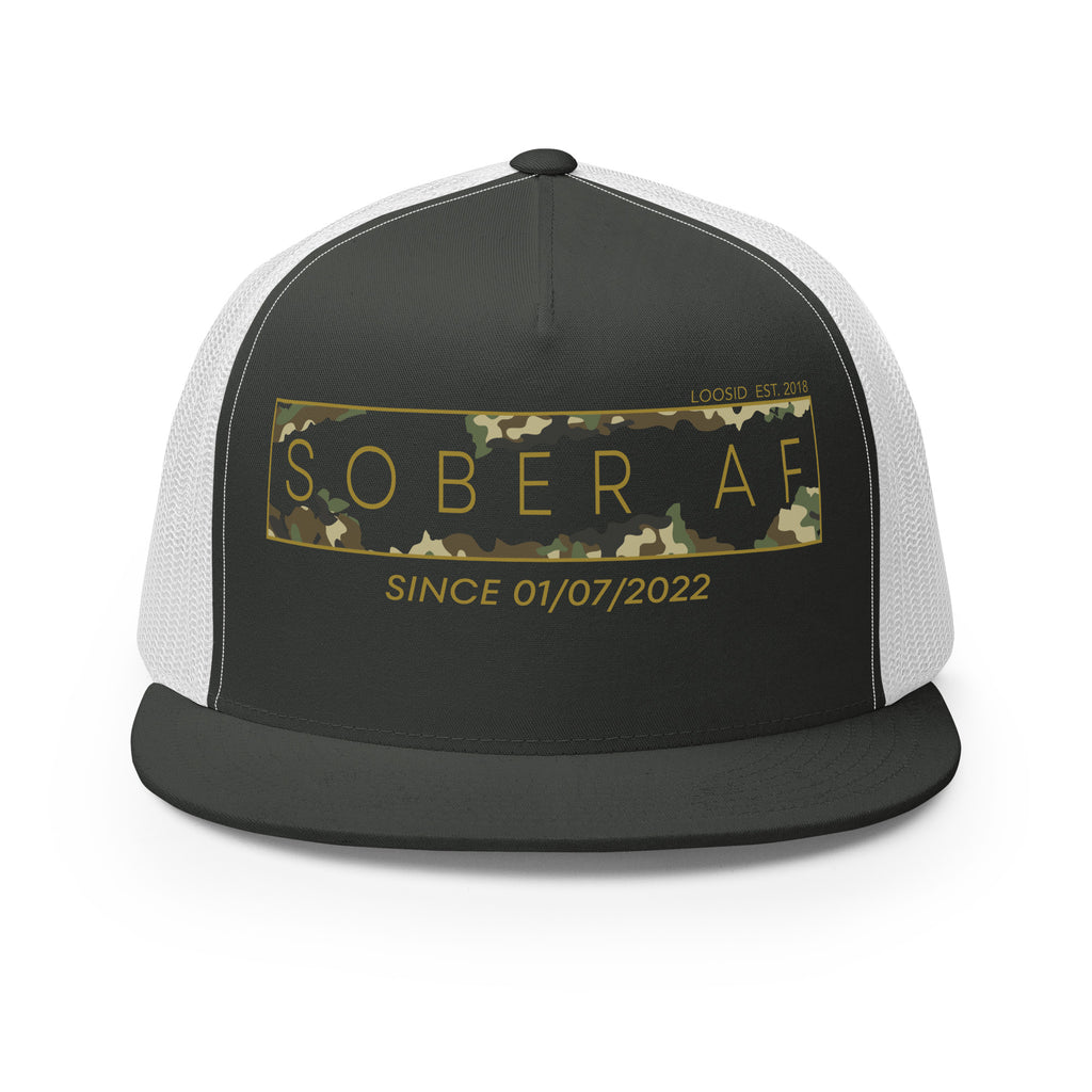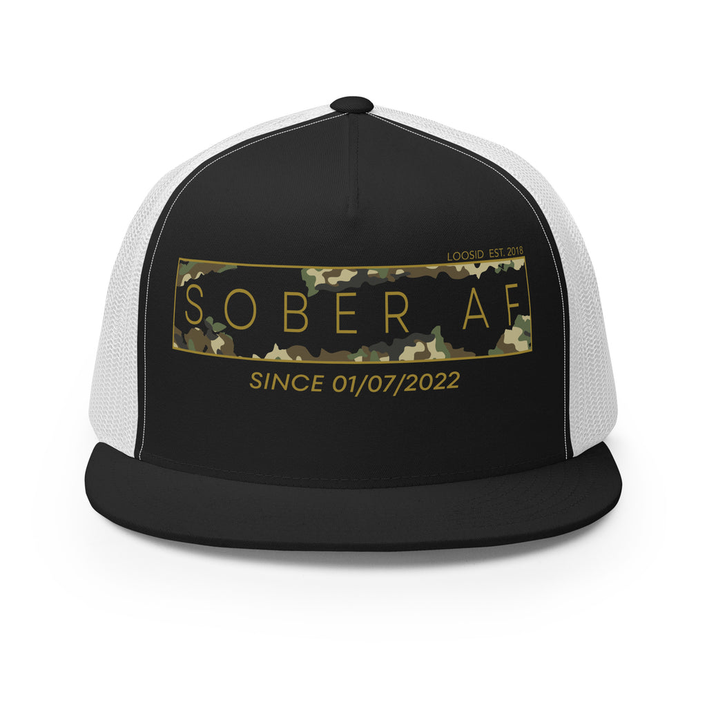 Sober AF Camo Snapback Trucker Hat w/ Personalized Sobriety Date