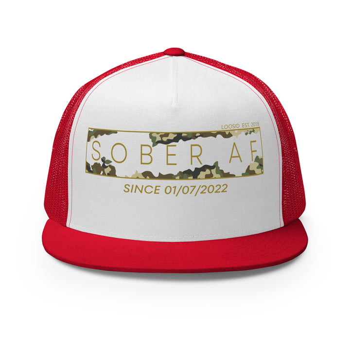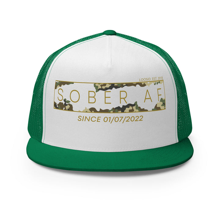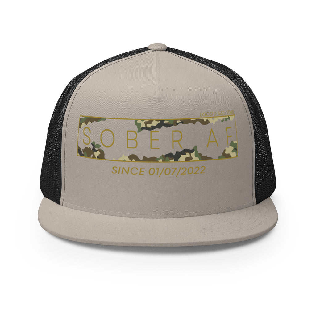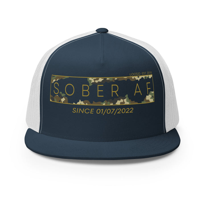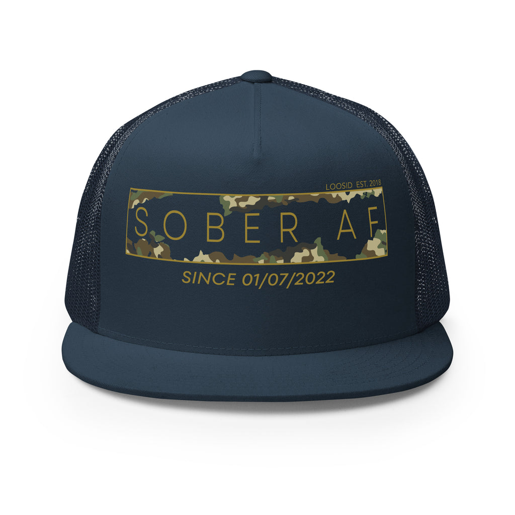 Sober AF Camo Snapback Trucker Hat w/ Personalized Sobriety Date