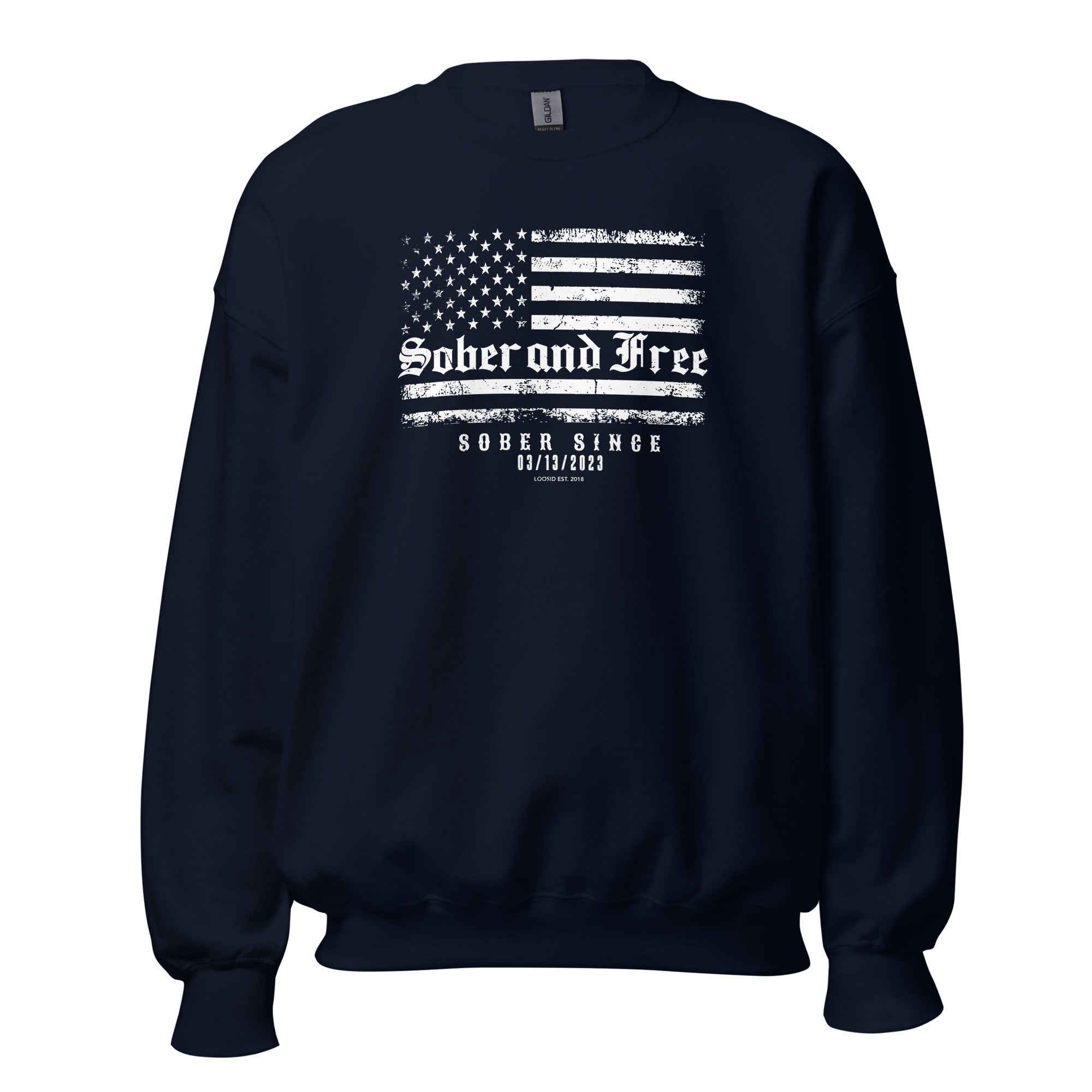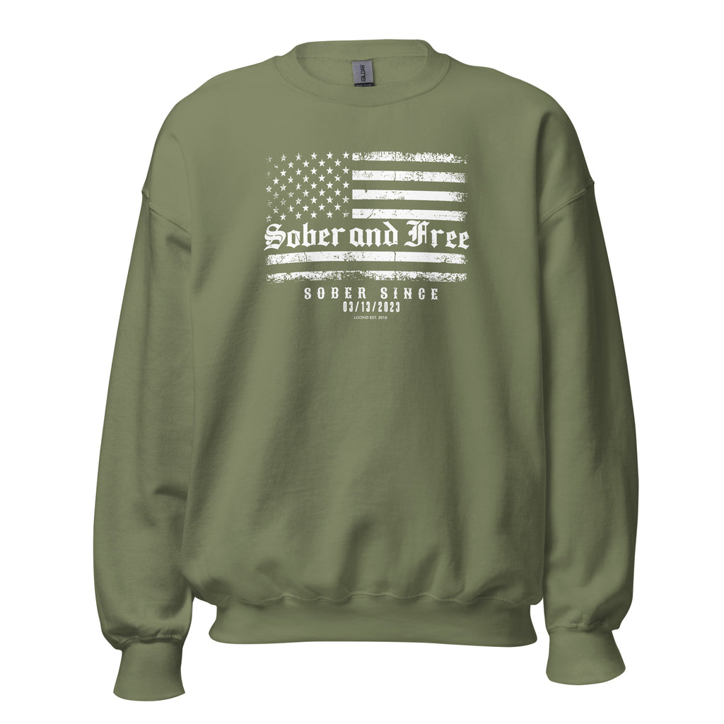 Sober and Free Sweatshirt with Custom Sobriety Date