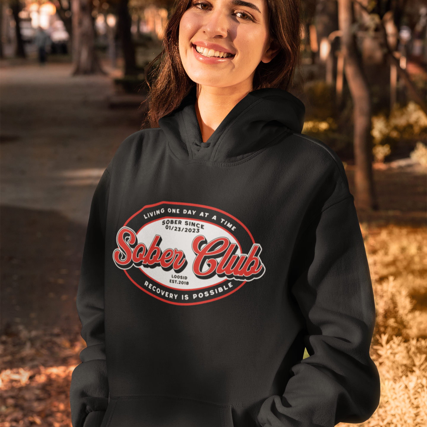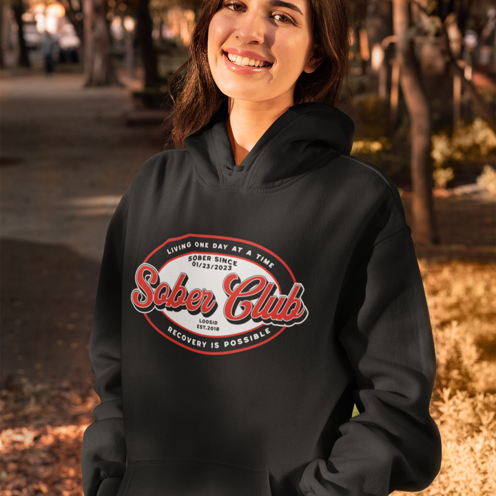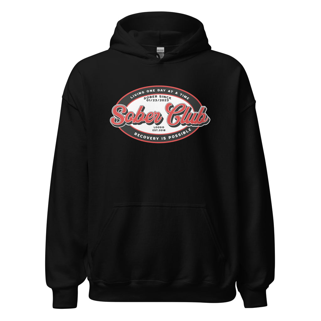 Sober Club Badge Unisex Hoodie with Custom Sobriety Date