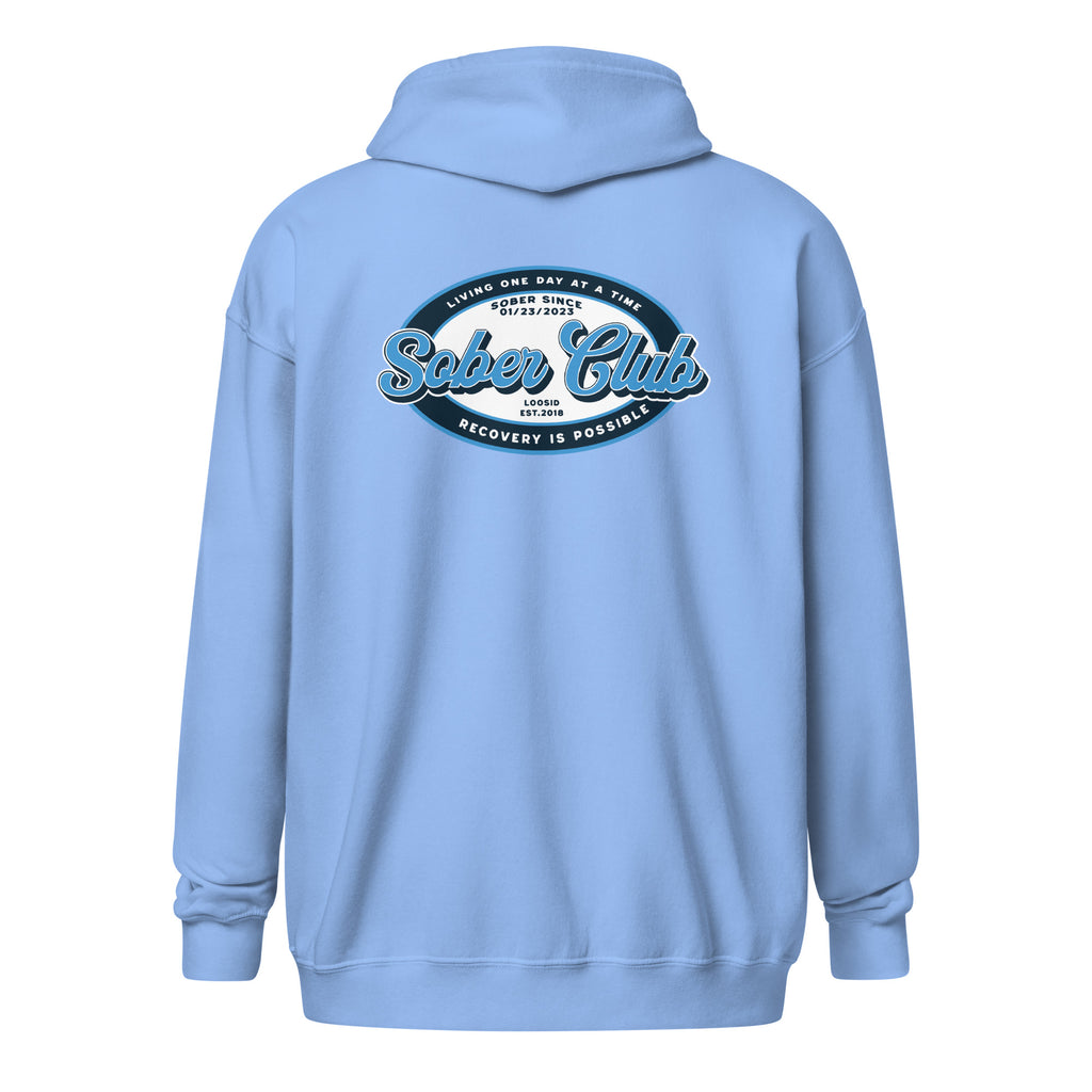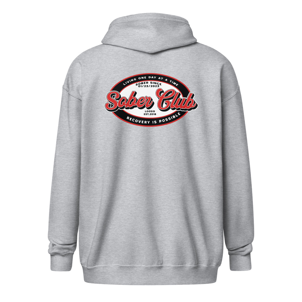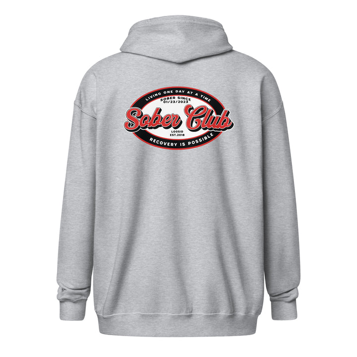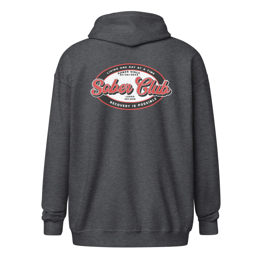 Sober Club Badge Unisex Zip Hoodie Front and Back Print Hoodie with Custom Sobriety Date (Front & Back)