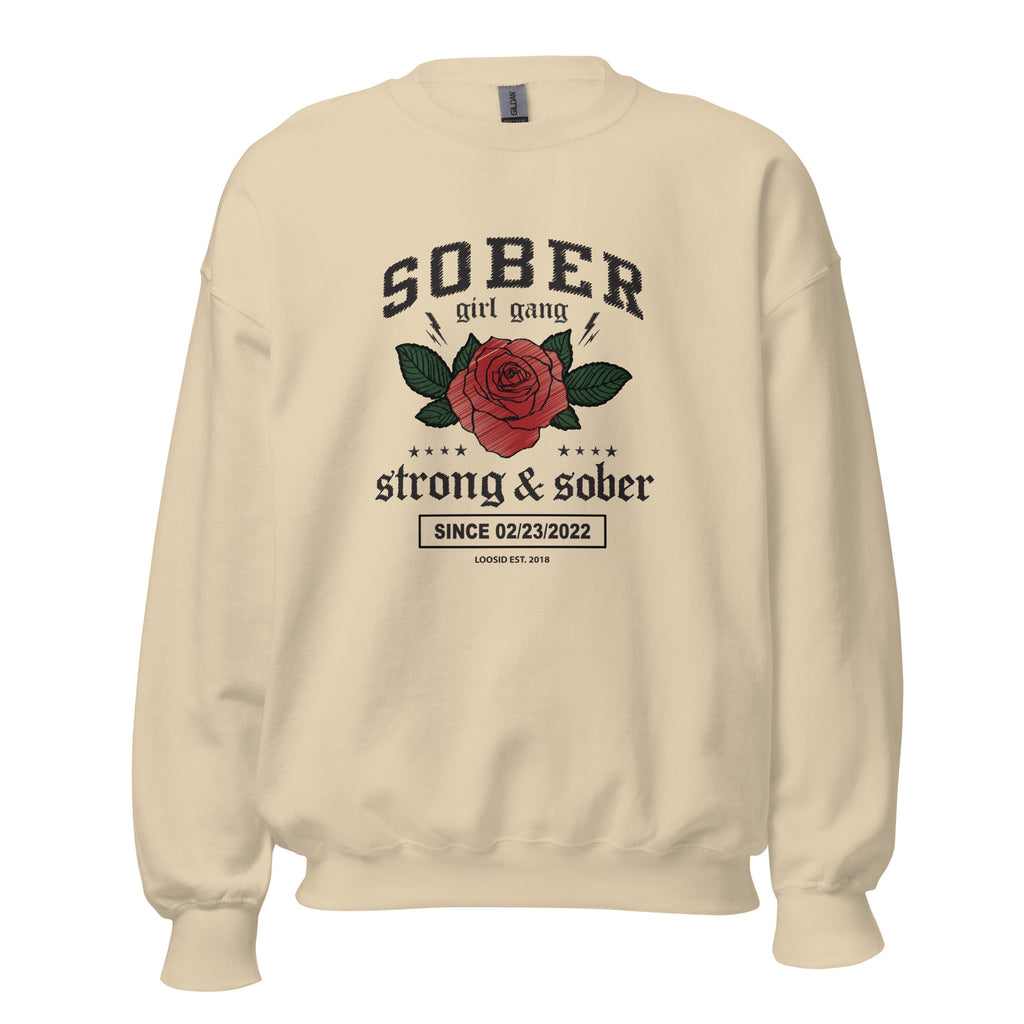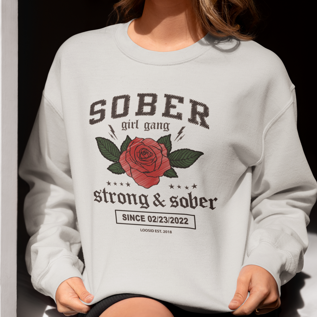 SOBER Girl Gang – Strong & Sober Sweatshirt with Custom Sobriety Date