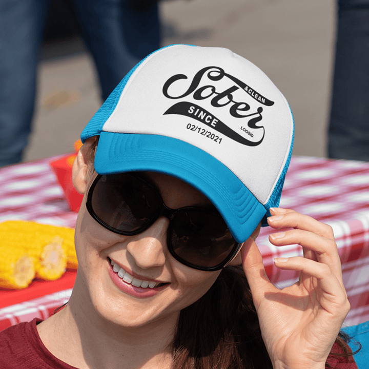 Sober Hat | Sober & Clean Since Trucker Hat with Personalized Date