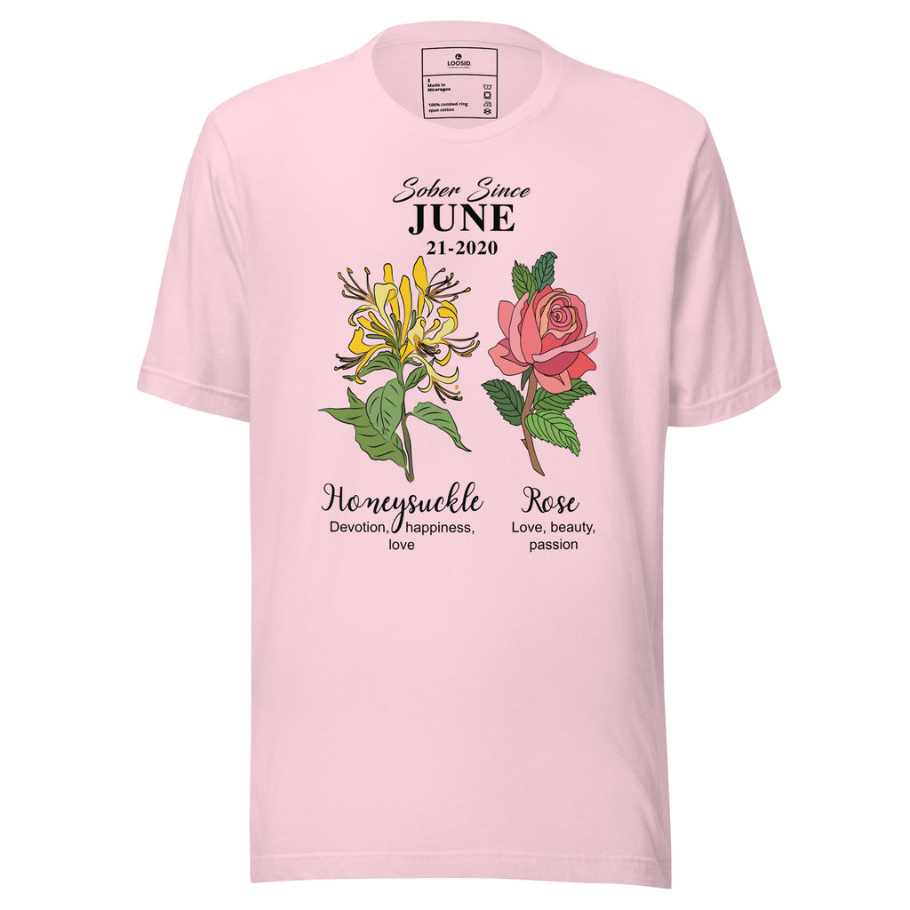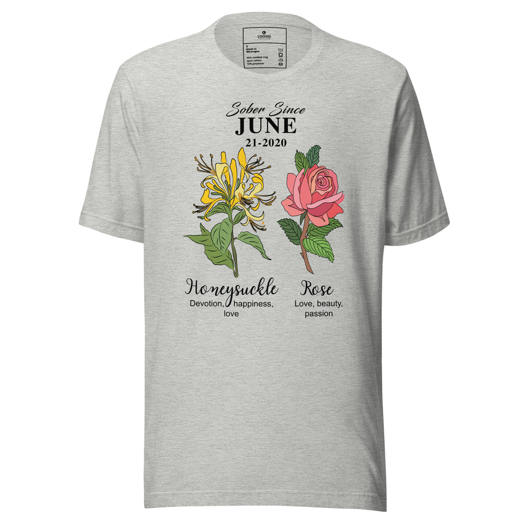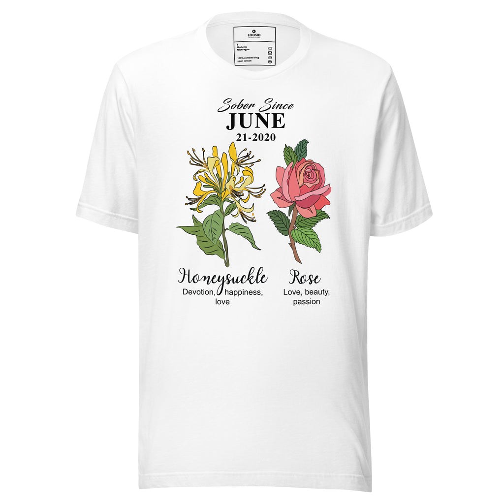 Sober Since Monthly Flower Tee – Personalized with Your Sober Date