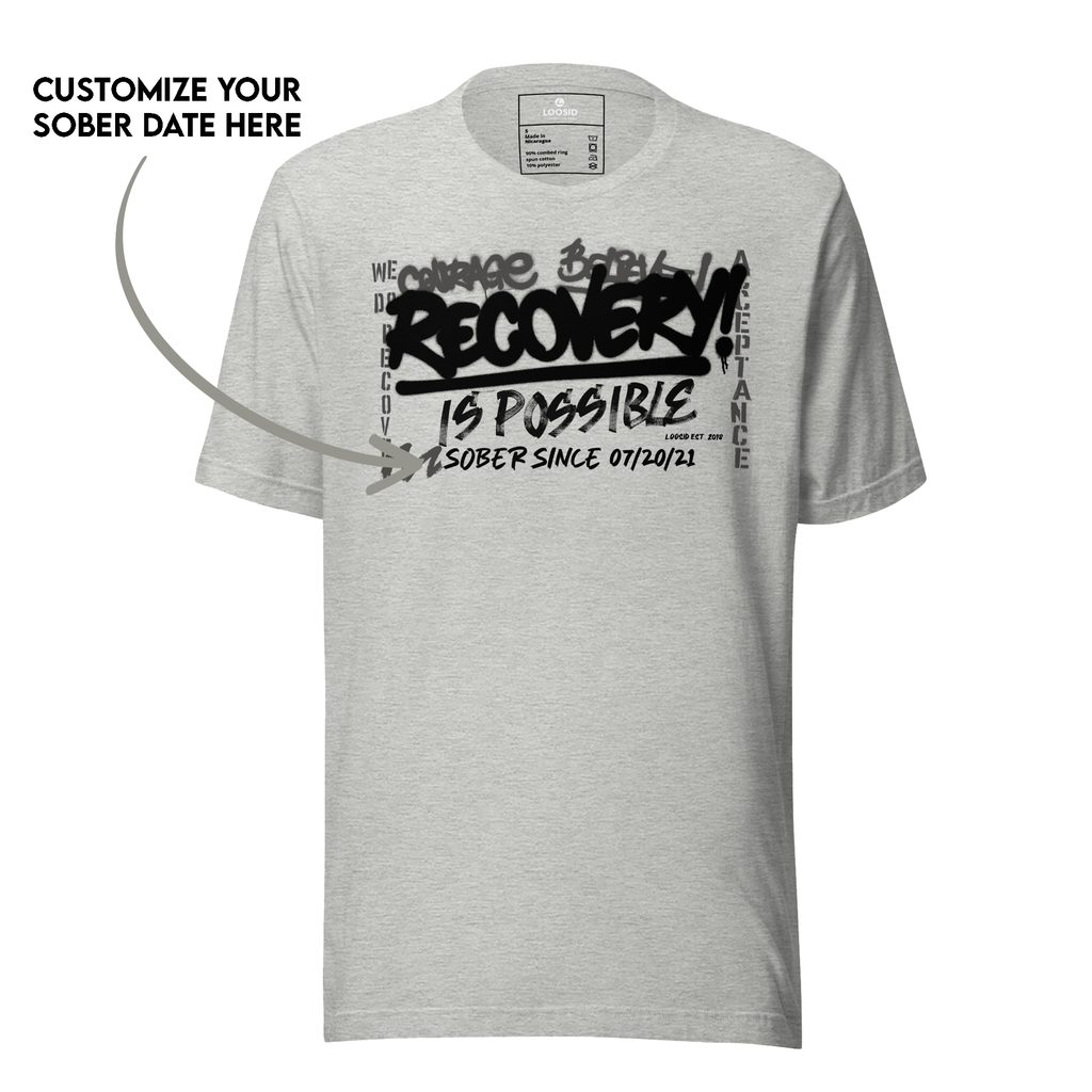 Sober T Shirt | Unisex Recovery Is Possible Tee with Personalized Sobriety Date