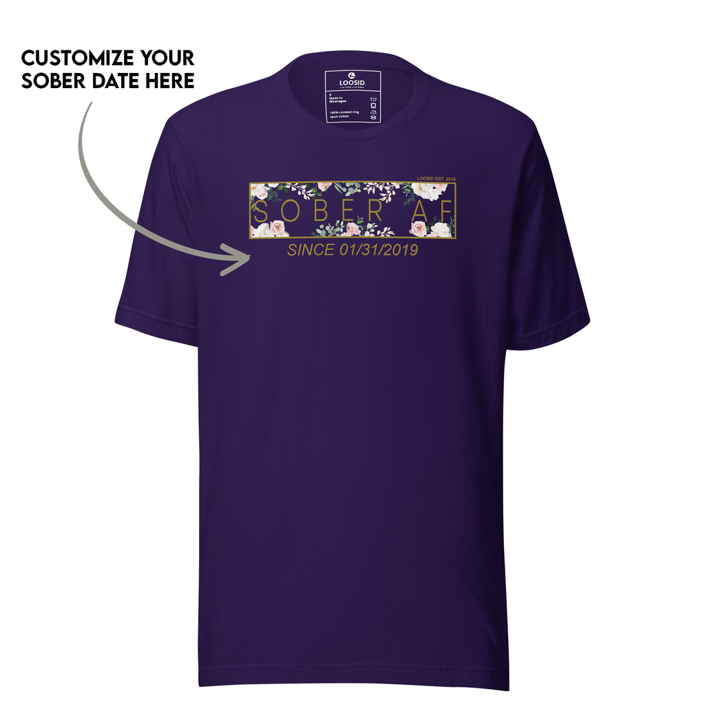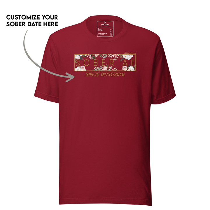 Sober T Shirt | Women’s Sober AF Flower Tee in Warm Colors with Personalized Sobriety Date