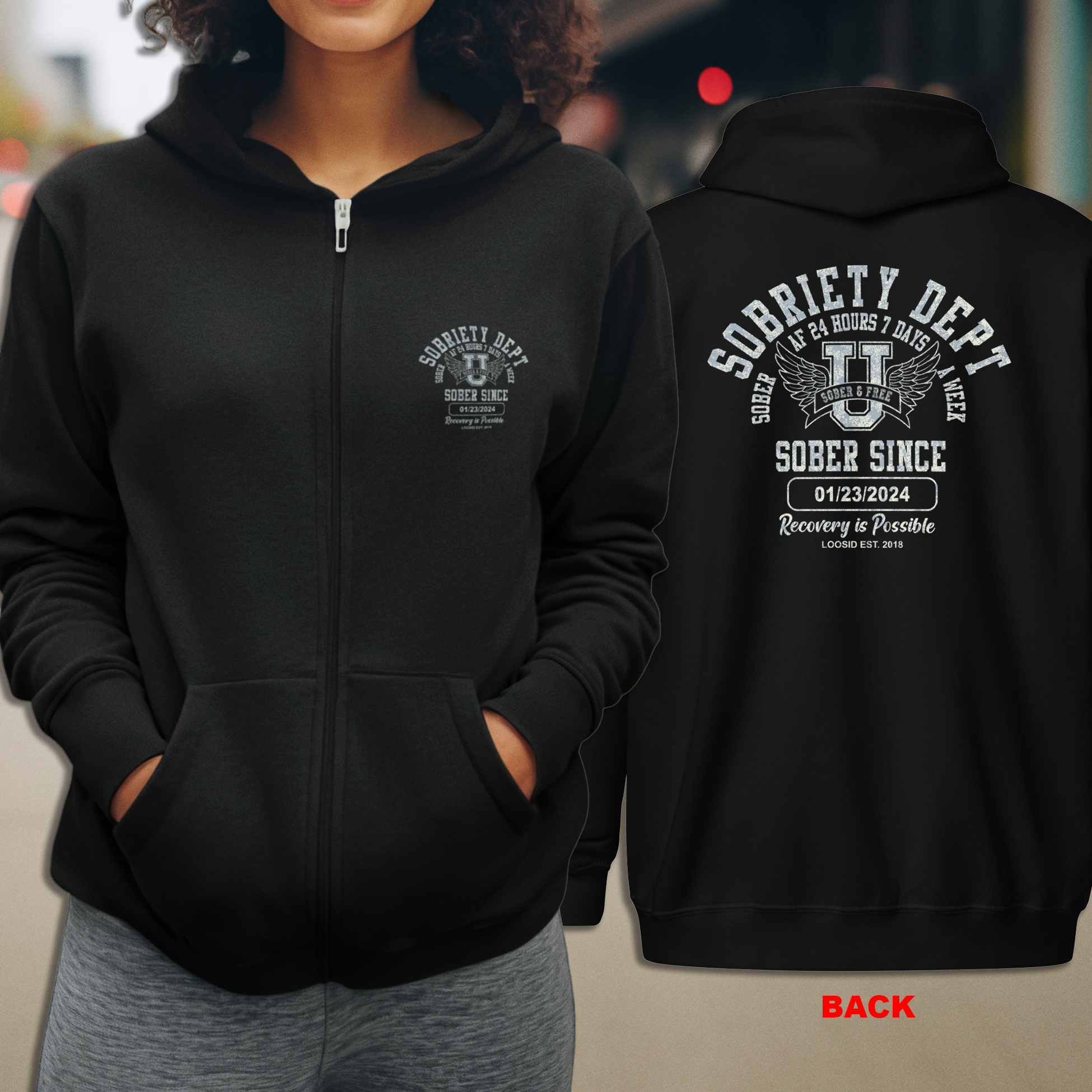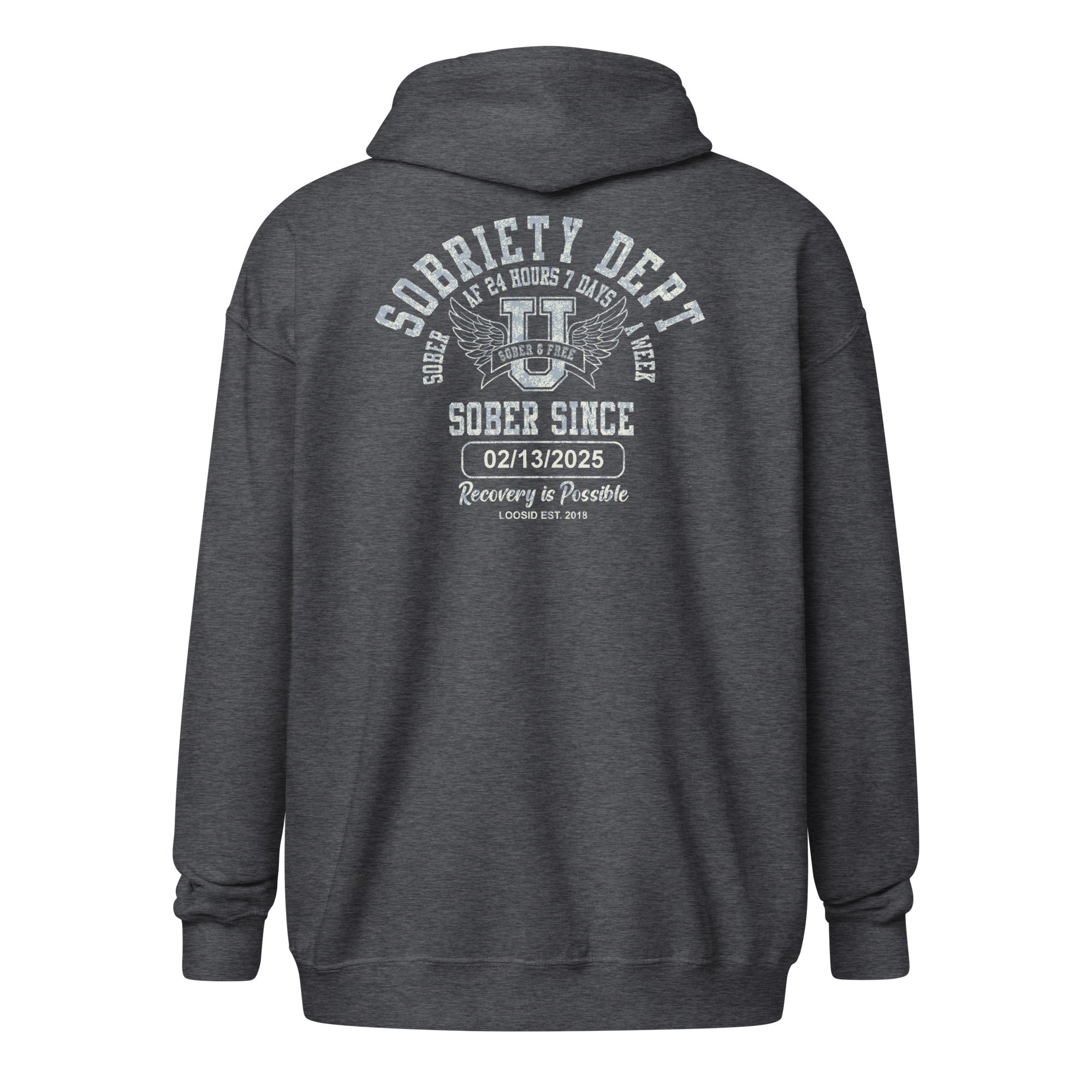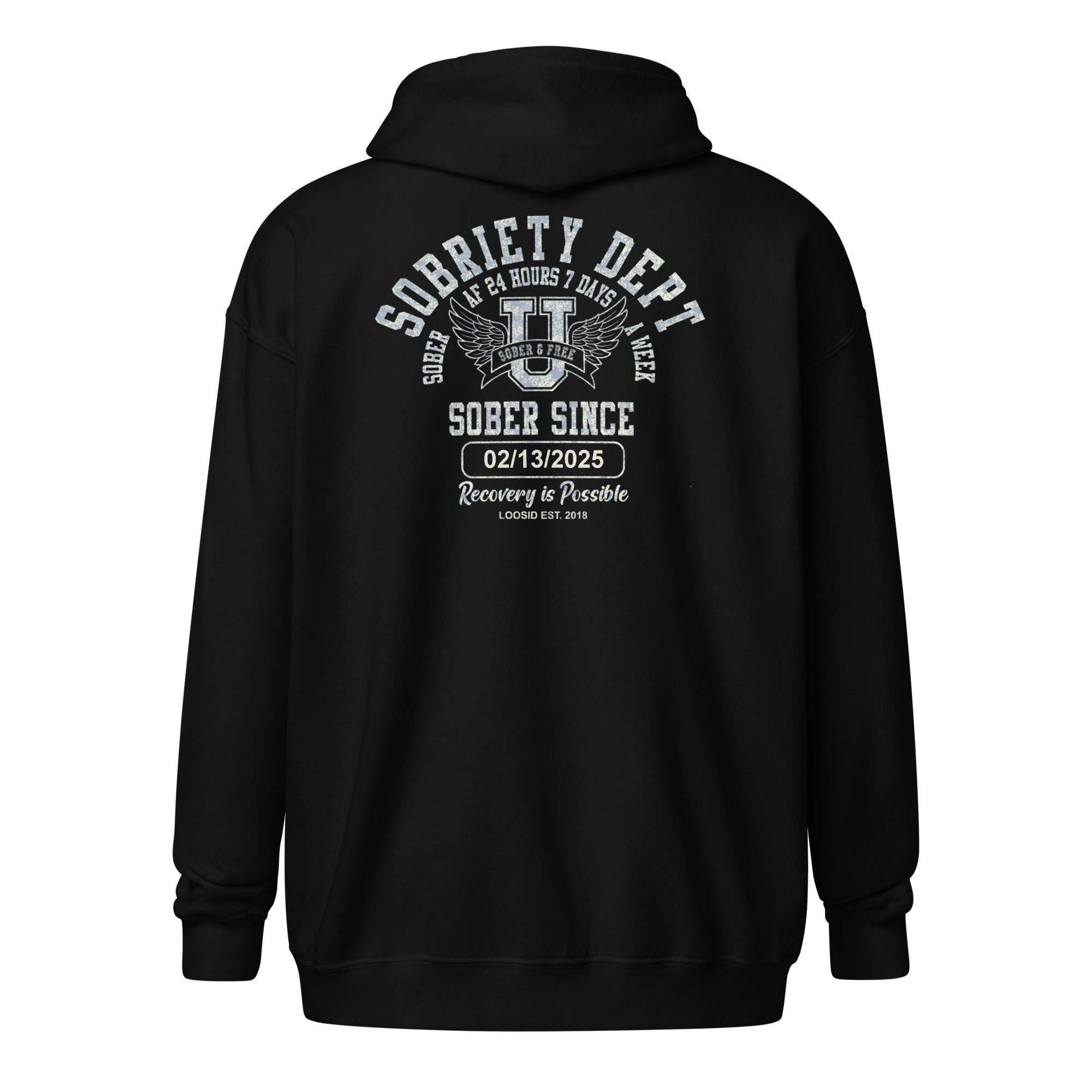 Sobriety Dept Zip Hoodie – Sober AF 24/7 with Custom Sobriety Date