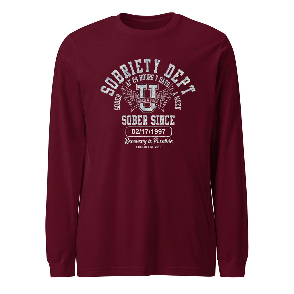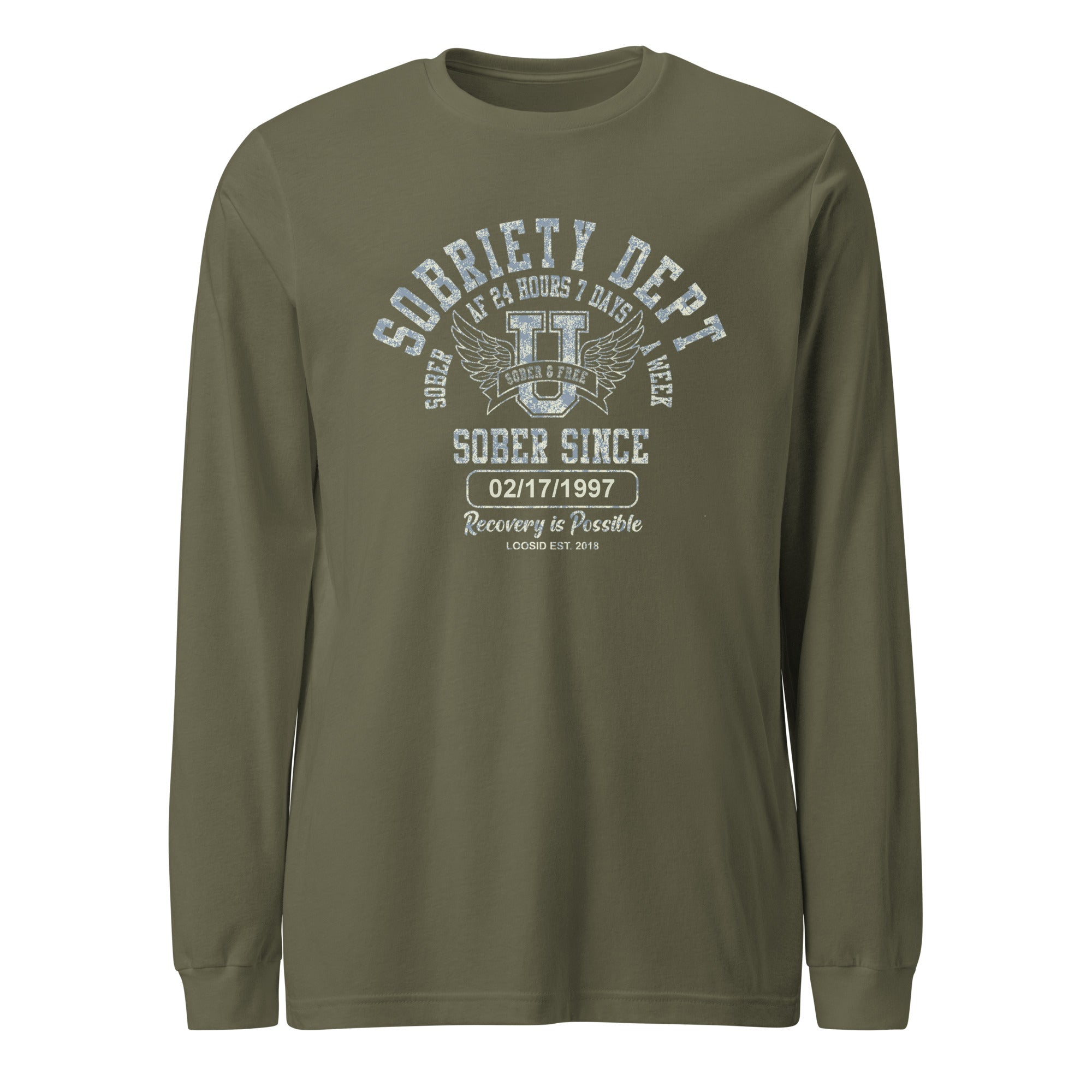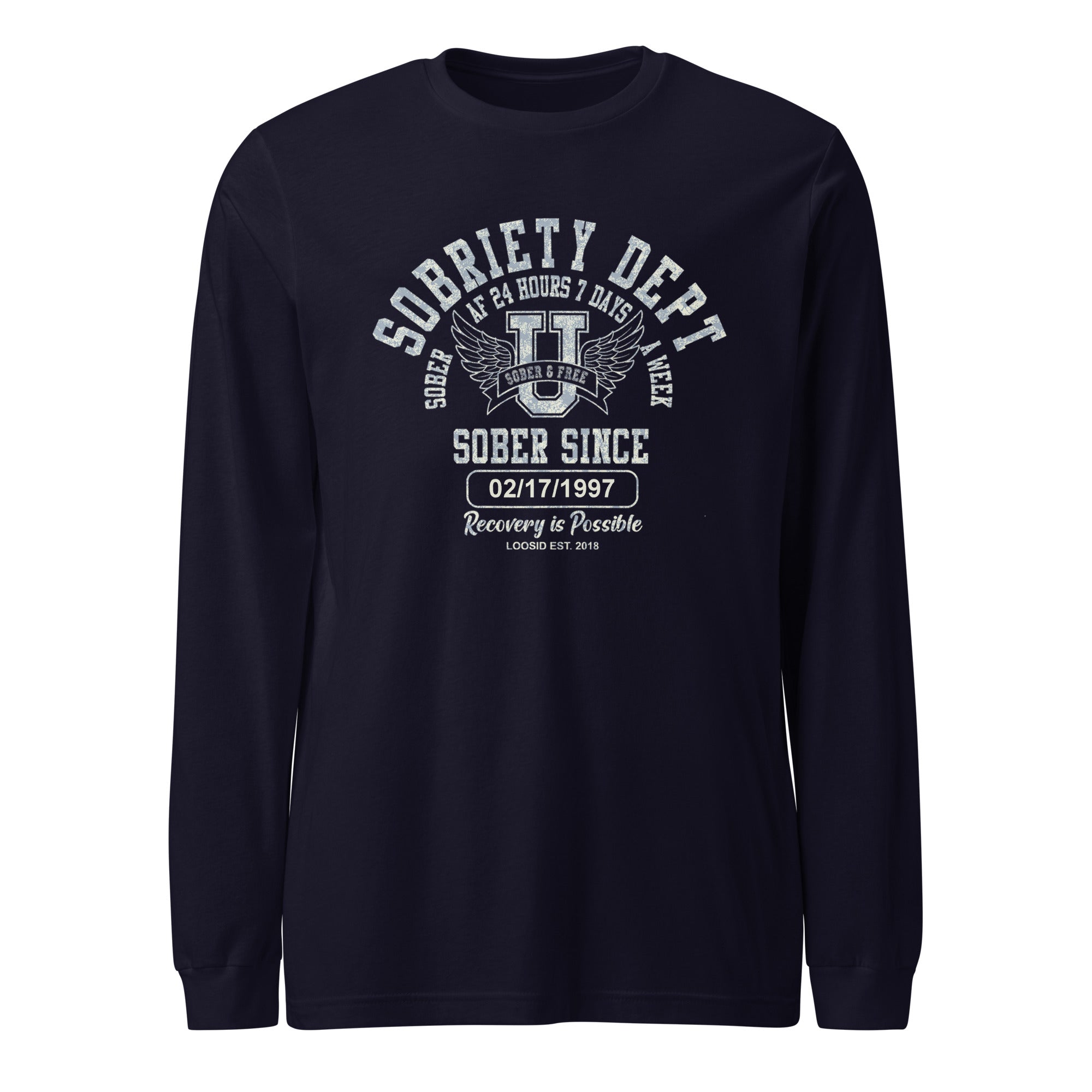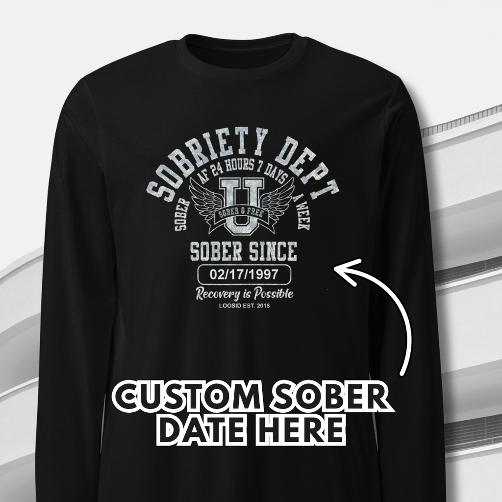 Sobriety Dept Sober AF 24/7 Long Sleeve with Custom Sobriety Date