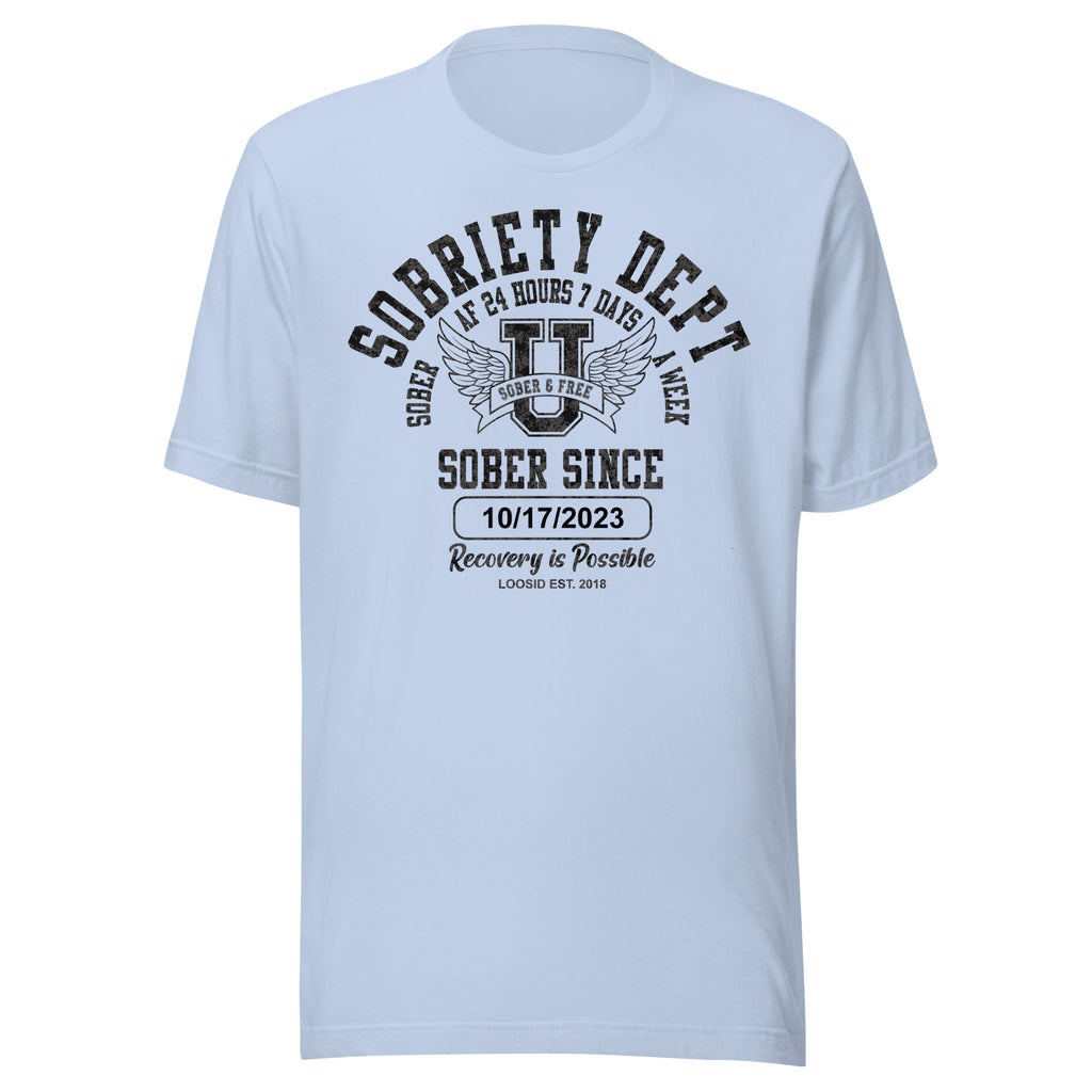 Sobriety Dept T-shirt– Sober AF 24/7 with Custom Sobriety Date